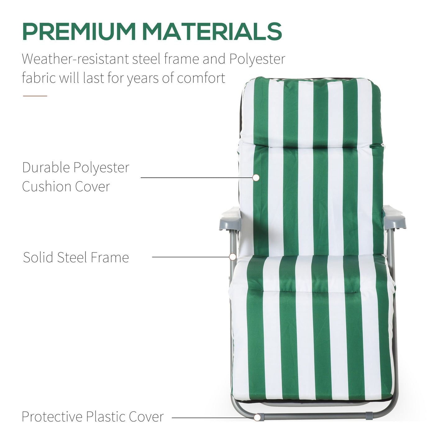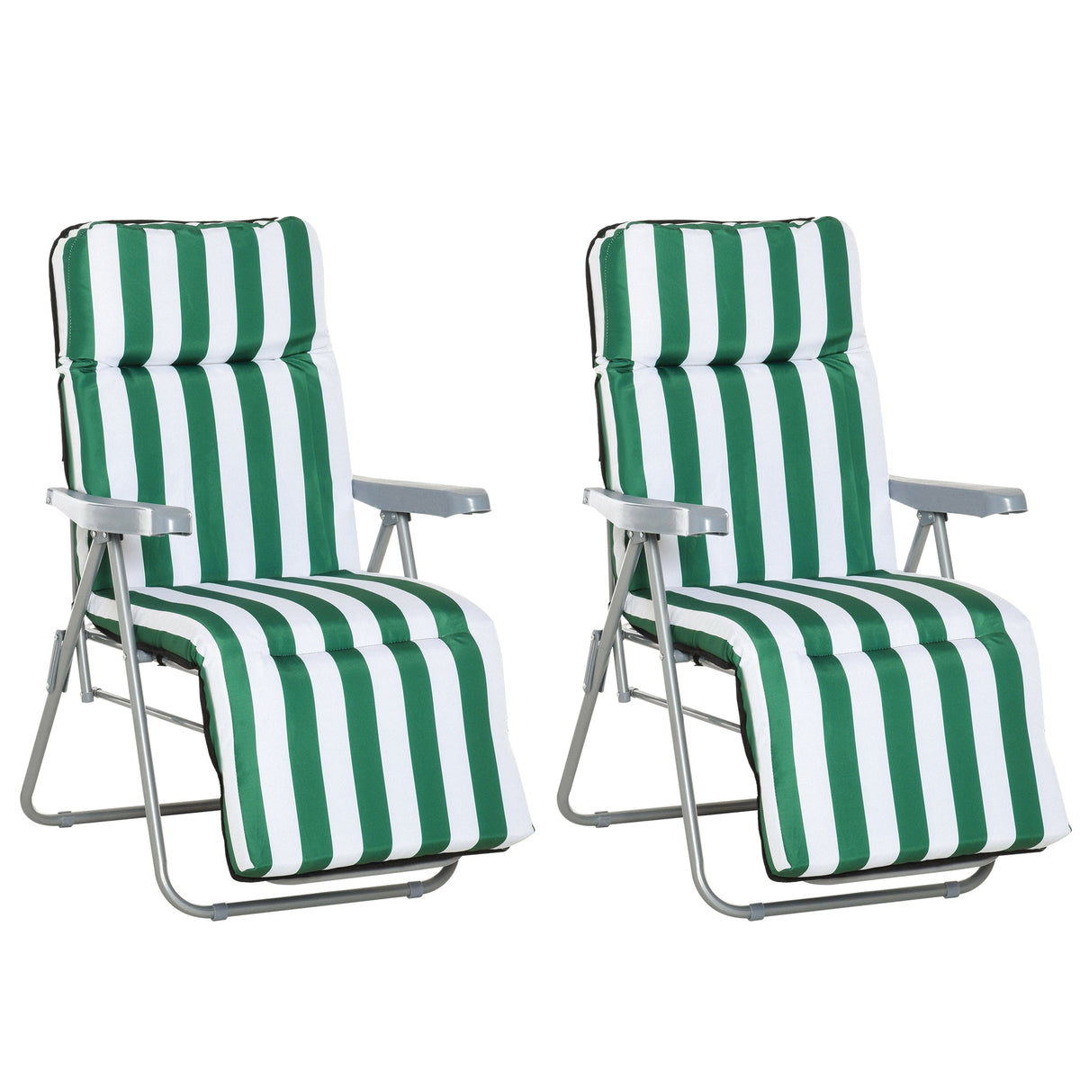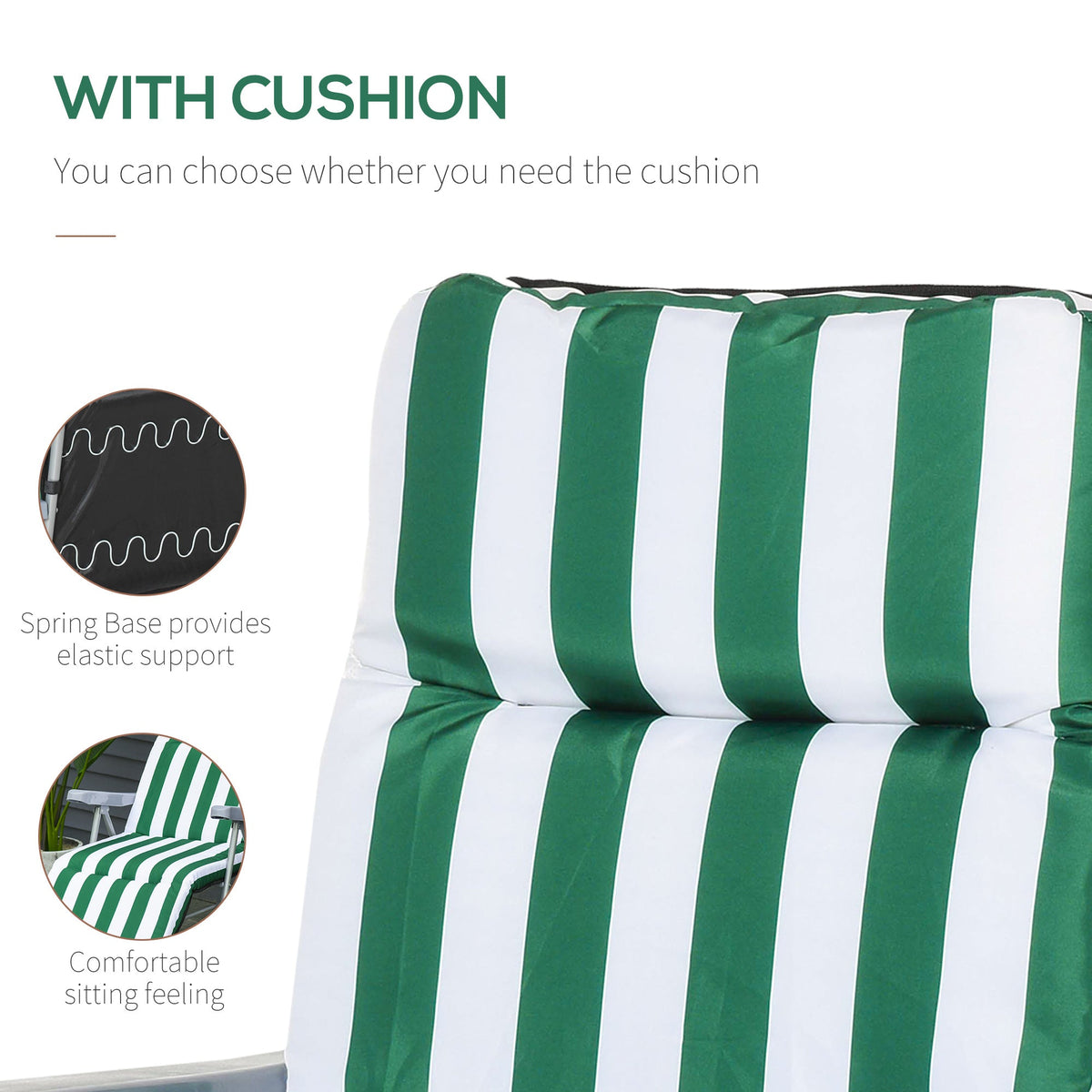 Outsunny 2 Pieces Outdoor Sun Lounger Set with Cushions, Patio Folding 5-Level Adjustable Backrest Recliner Chairs Set of 2 with High Backrest and Armrests, Green & White - Green