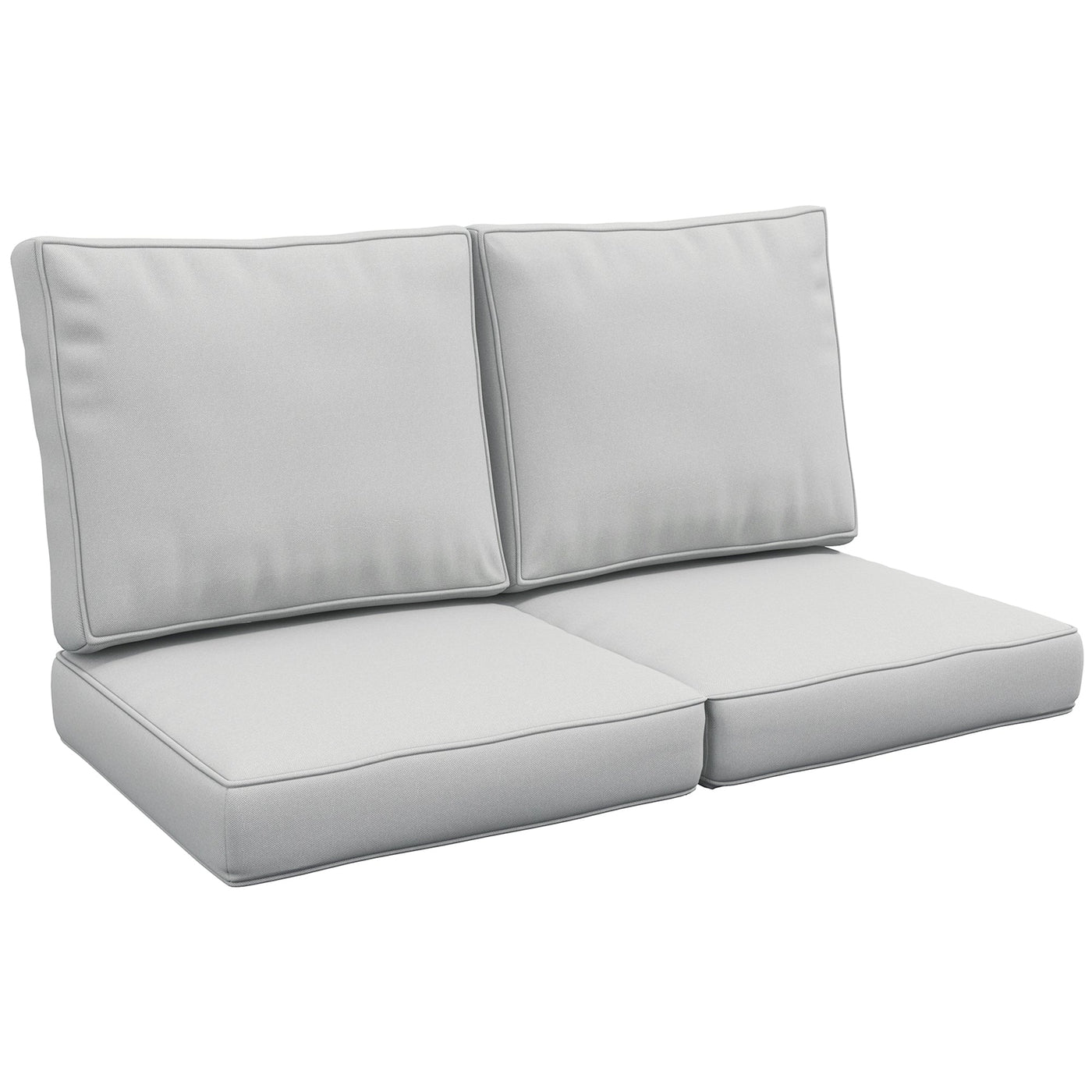 Outsunny 2 Seater Back and Seat Cushion Pillows Replacement, Patio Chair Cushions Set for Indoor Outdoor, Light Grey - Light Grey