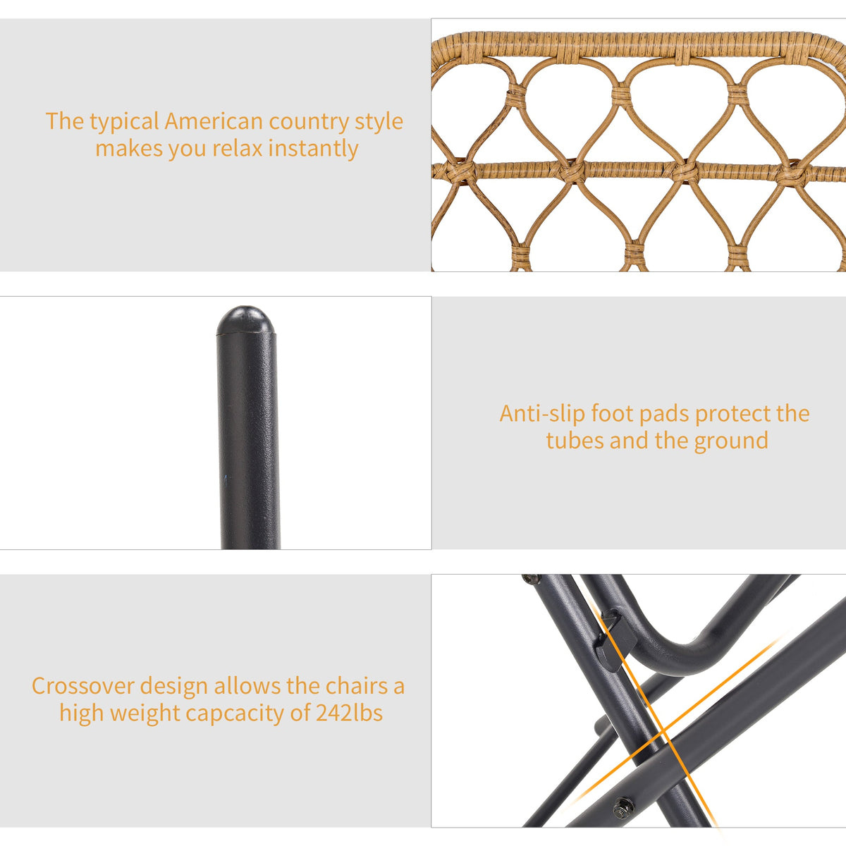 This bistro table set is made of high-quality PE rattan, with a strong metal frame underneath. Not only does this promote longevity, but helps fight against the weather as well. The patio furniture has a natural rattan look and feel, creating a raw aesthetic that fits in perfectly with your own patio. However, the material of this cafe bistro table is PE, which is easy to clean and maintain. Check out this patio set, and start enjoying conversation and meals outdoors.