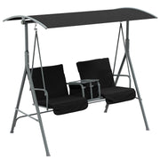 Outsunny 2 Seater Garden Swing Chair Patio Rocking Bench w/ Tilting Canopy, Double Padded Seats, Storage Bag and Tray, Black - Black