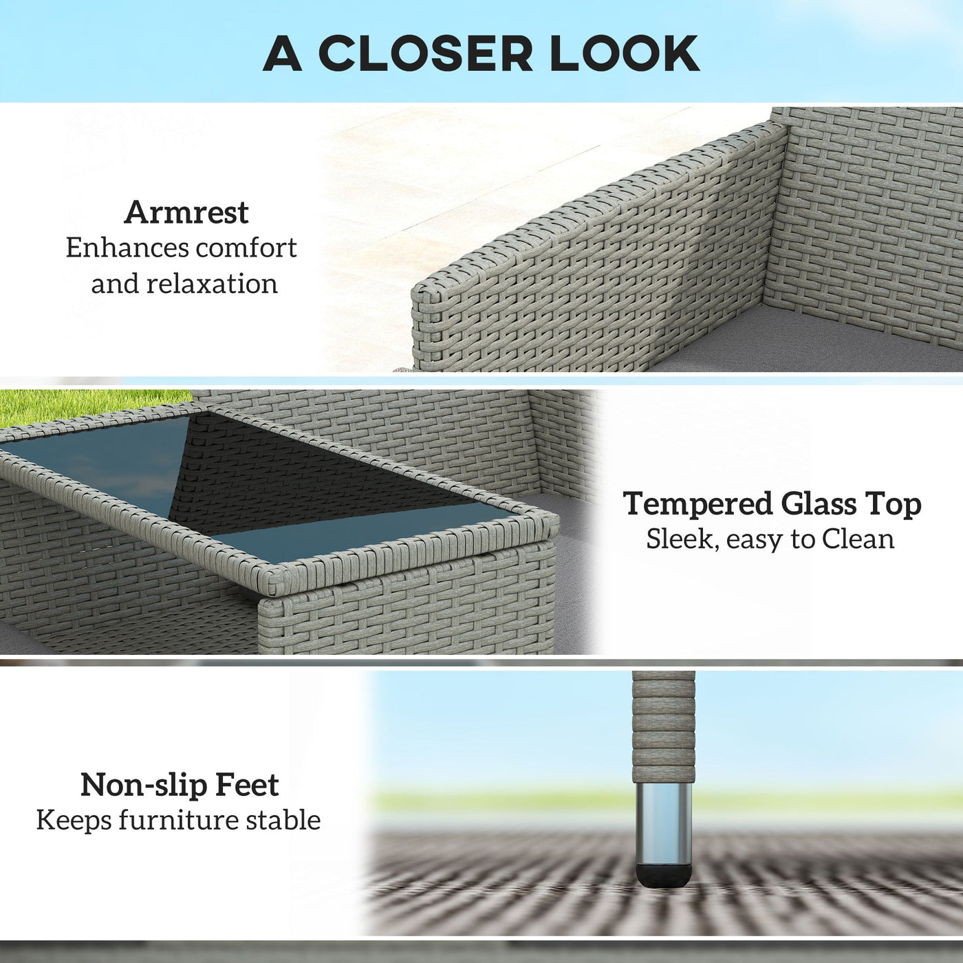 Make those wonderful times outdoors even better than before with the garden patio sofa from Outsunny. Using metal for the base frame to provide underlying strength for seasons to come, it is crafted into a multifunctional two seat and middle table design – giving space for you to sit with a friend with a place to keep drinks, books and smaller items right next to you. Fire-retardant for safety, thick cushions are placed on the seats for comfort, with water-resistant covers.