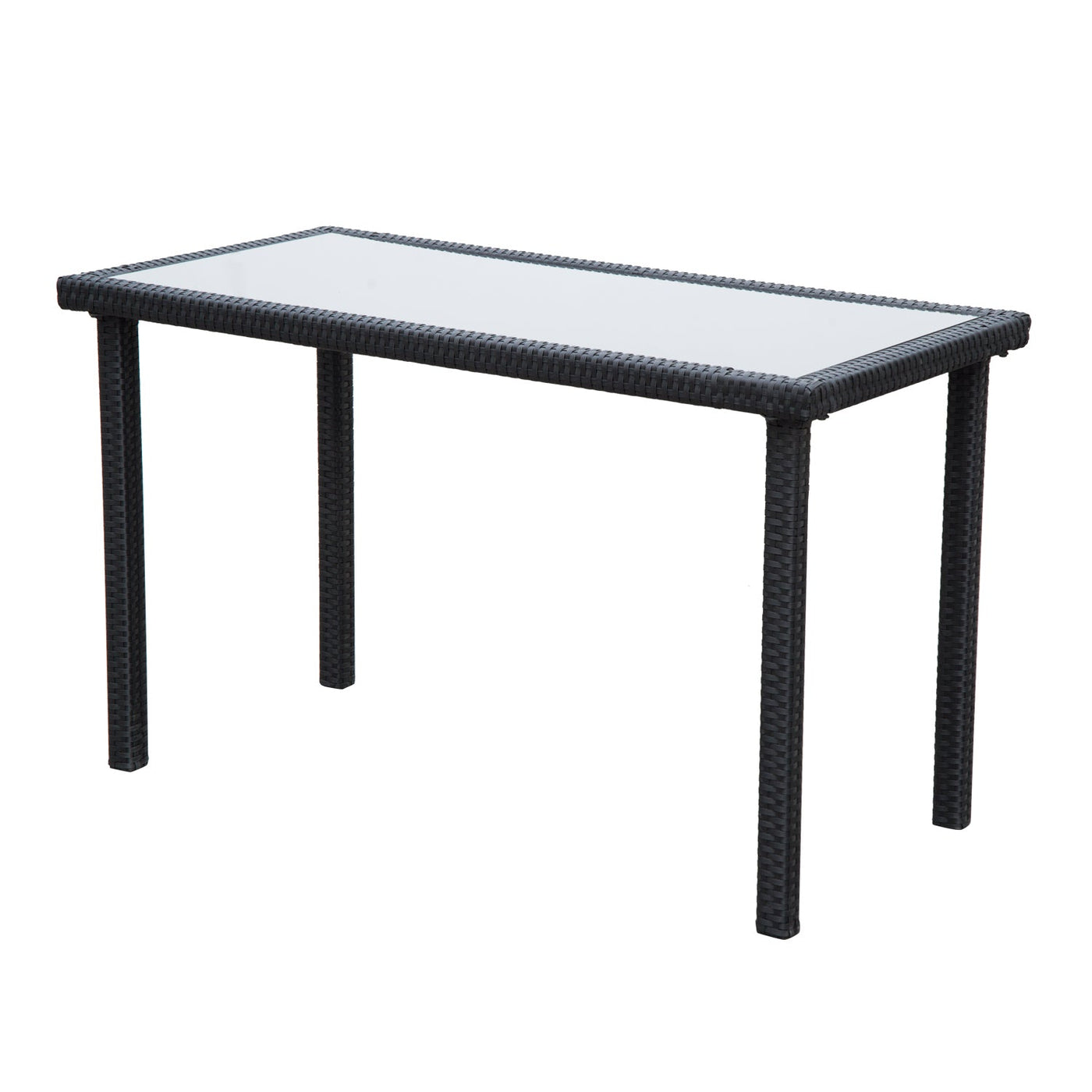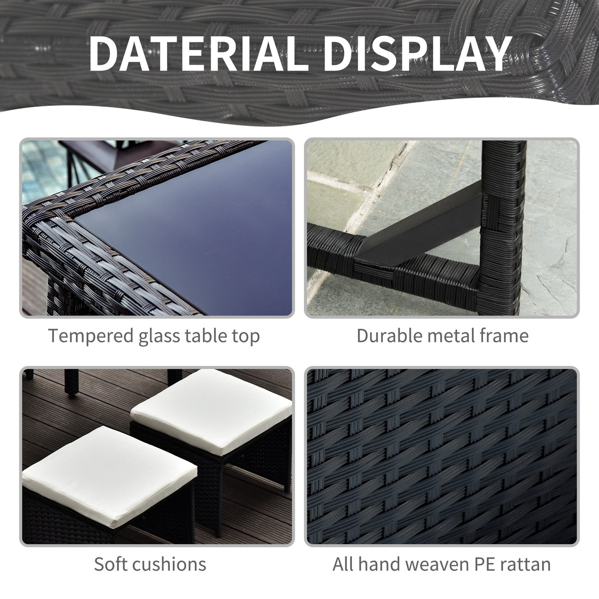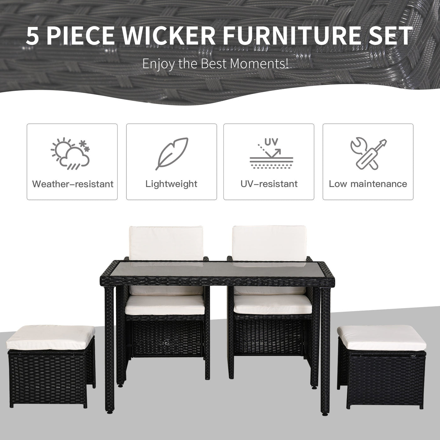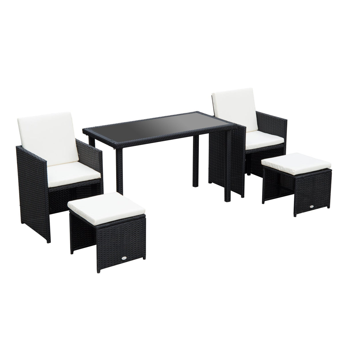 Outsunny 2 Seater Rattan Cube Garden Furniture Set, Rattan Dining Set with Cushions, Outdoor Dining Table and Chairs with 2 Armchairs, 2 Stools, Rectangular Glass Top Table for Patio, Balcony, Black - Black