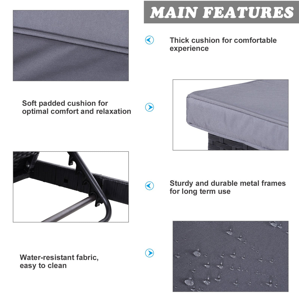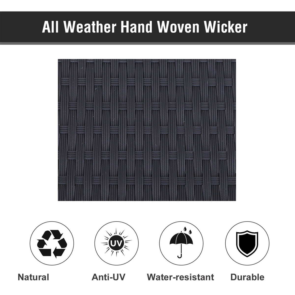 Outsunny 2 Seater Rattan Lounger Adjustable Double Chaise Chair Loveseat w/ Cushion Black - Black