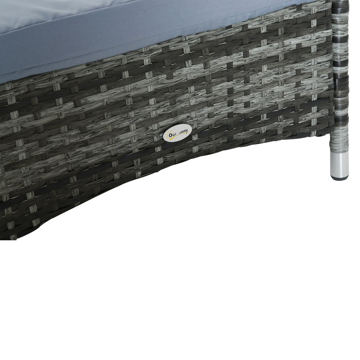 Outsunny 2PC Rattan Sun Lounger Recliner Bed Reclining Chair Patio Garden Outdoor Wicker Weave Adjustable Headrest with Fire Retardant Cushion – Grey - Grey