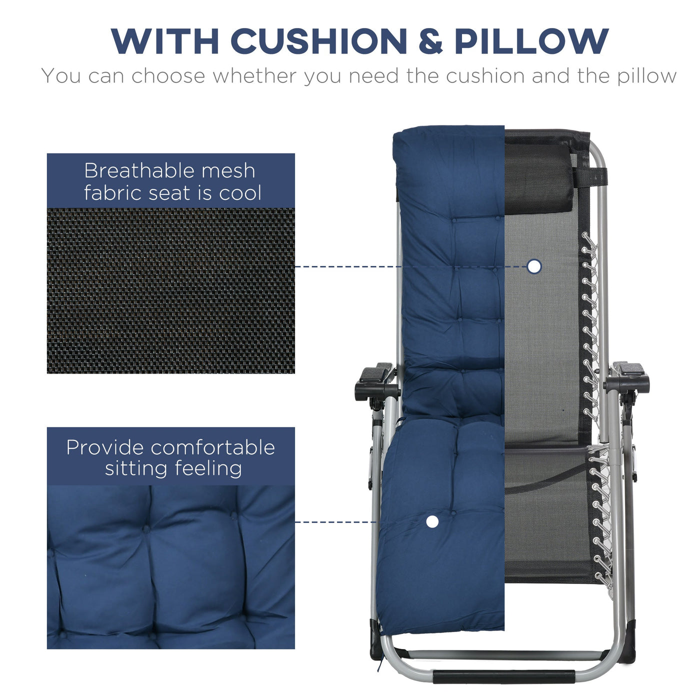 Outsunny 2pc Reclining Zero Gravity Sun Loungers ,Folding Chaise Lounge Chair with Cushions, Blue - Blue