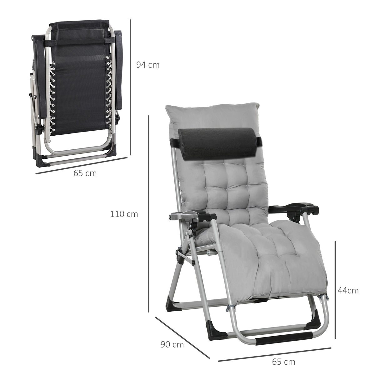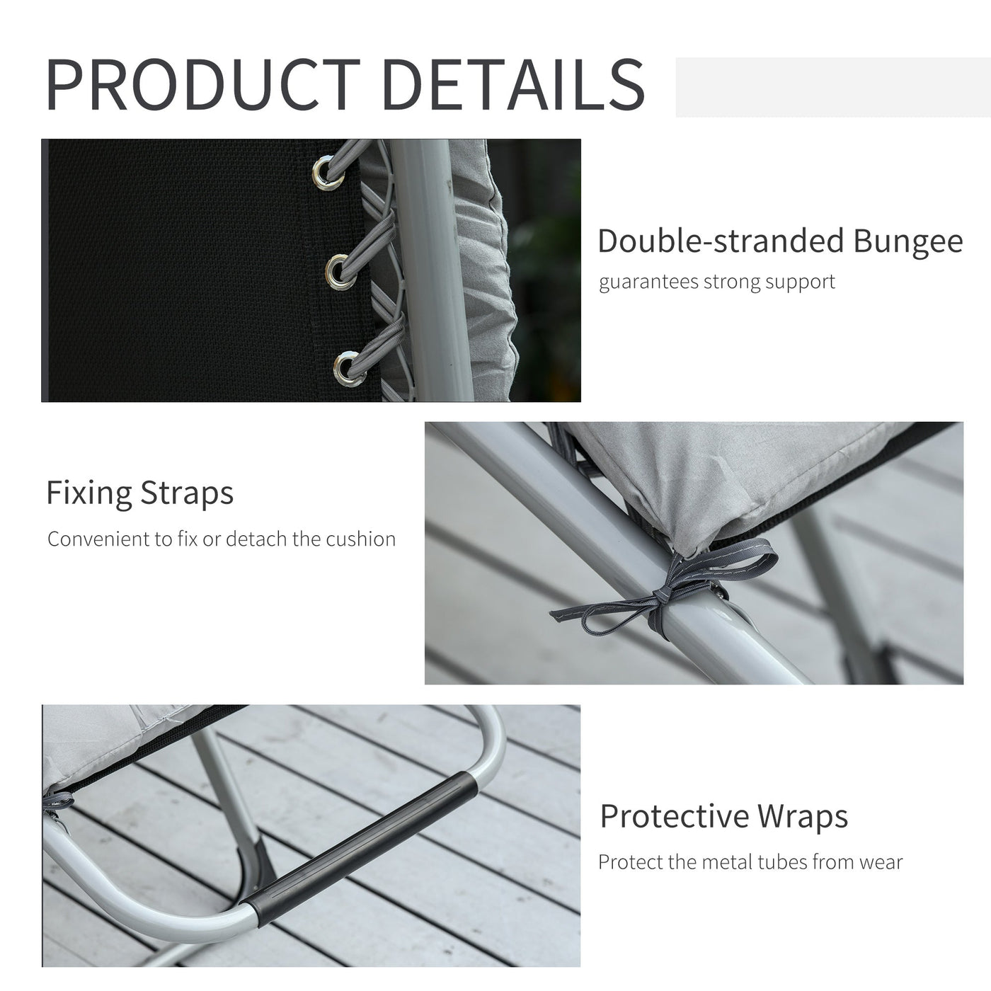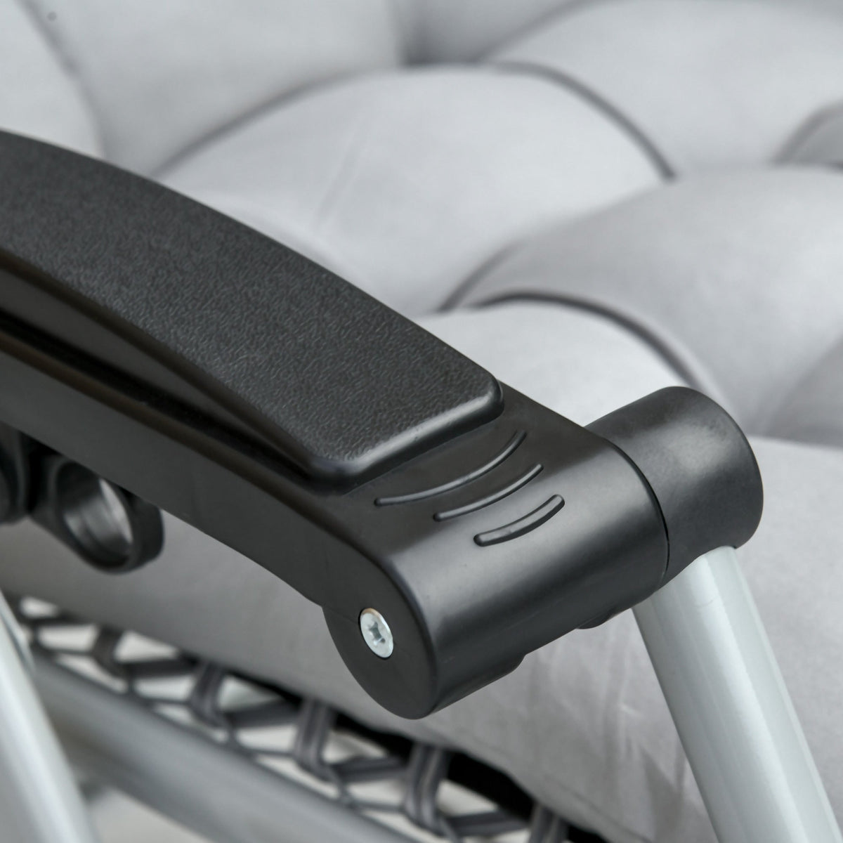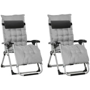 Outsunny 2pc Reclining Zero Gravity Sun Loungers ,Folding Chaise Lounge Chair with Cushions, Light Grey - Light Grey