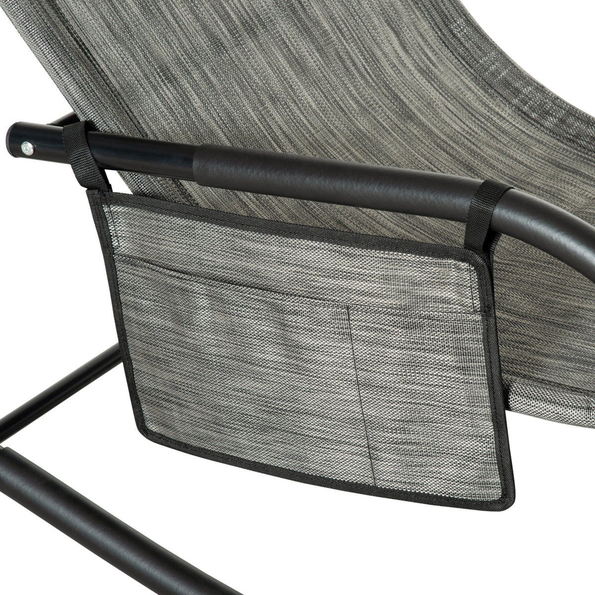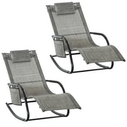 Outsunny 2PCs Outdoor Garden Rocking Chair, Patio Sun Lounger Rocker Chair with Breathable Mesh Fabric, Removable Headrest Pillow, Armrest, Side Storage Bag, Dark Grey - Dark Grey