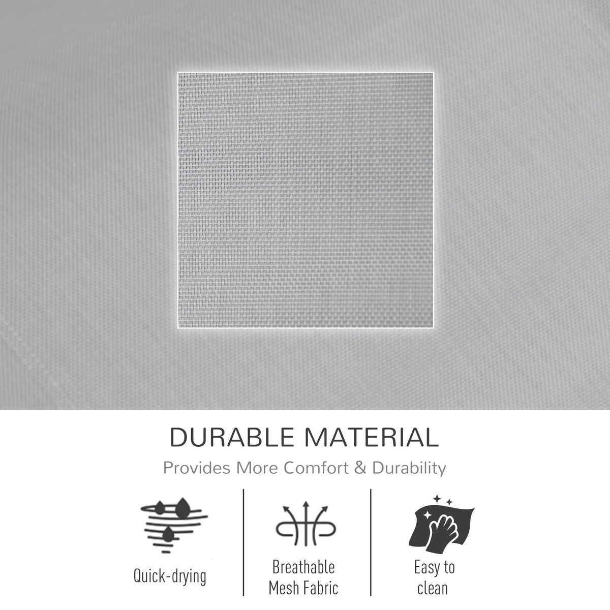 This outdoor rocking chair from Outsunny is a great way to relax outdoors. The curved frame has been made with your body comfort in mind, hugging to the contour of its shape. The seat is wrapped in mesh fabric which holds yours body in place, with a removable top pillow for head and neck comfort. Our patio rocking chair is finished with a removable side pocket, keeping everything you need next to you and rubber pads on the metal frame for protection.