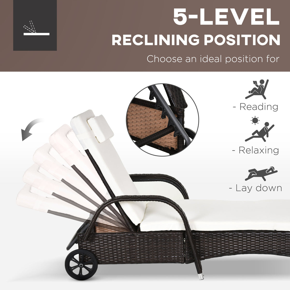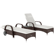 Outsunny 3 Pieces PE Rattan Patio Lounge Chair Set, Outdoor Recliner Lounge Chairs with Wheels, for Outside with Cushions, Headrest, Coffee Table for Garden, Poolside, Brown - Brown