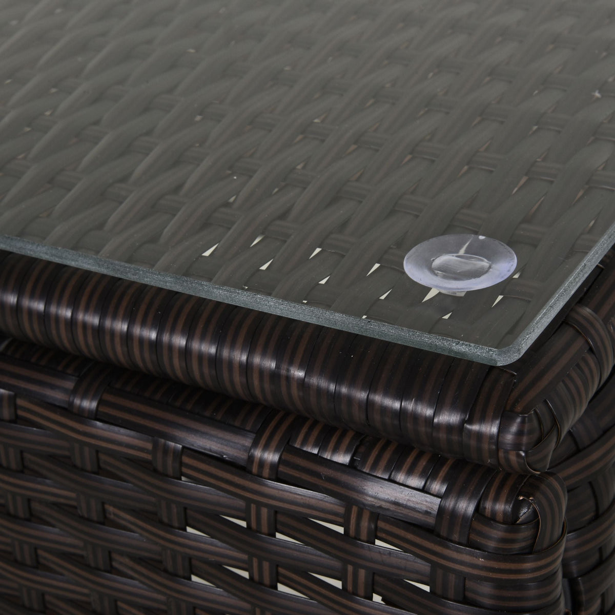 The rattan patio chaise lounge set from Outsunny comes complete with 2 loungers, 1 side table and cushions. The seat has 5 adjustable positions to give maximum relaxation and comfort. The side table also has a glass top to keep your drinks at easy reach, and the set can be used indoors and outdoors.