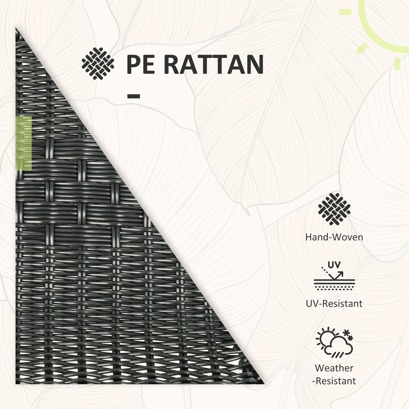 Create your personal oasis with our Outsunny garden furniture set! This garden bistro set features two trendy leisure chairs and a stylish tempered glass tea table, making it great for relaxation and socializing. Each chair is adorned with a wide seat, firm backrest and armrest, providing a cosy seating experience. Elevate your outdoor space with these bistro table and chairs, adding a touch of fun and leisure to your everyday life. Experience serenity and style like never before!