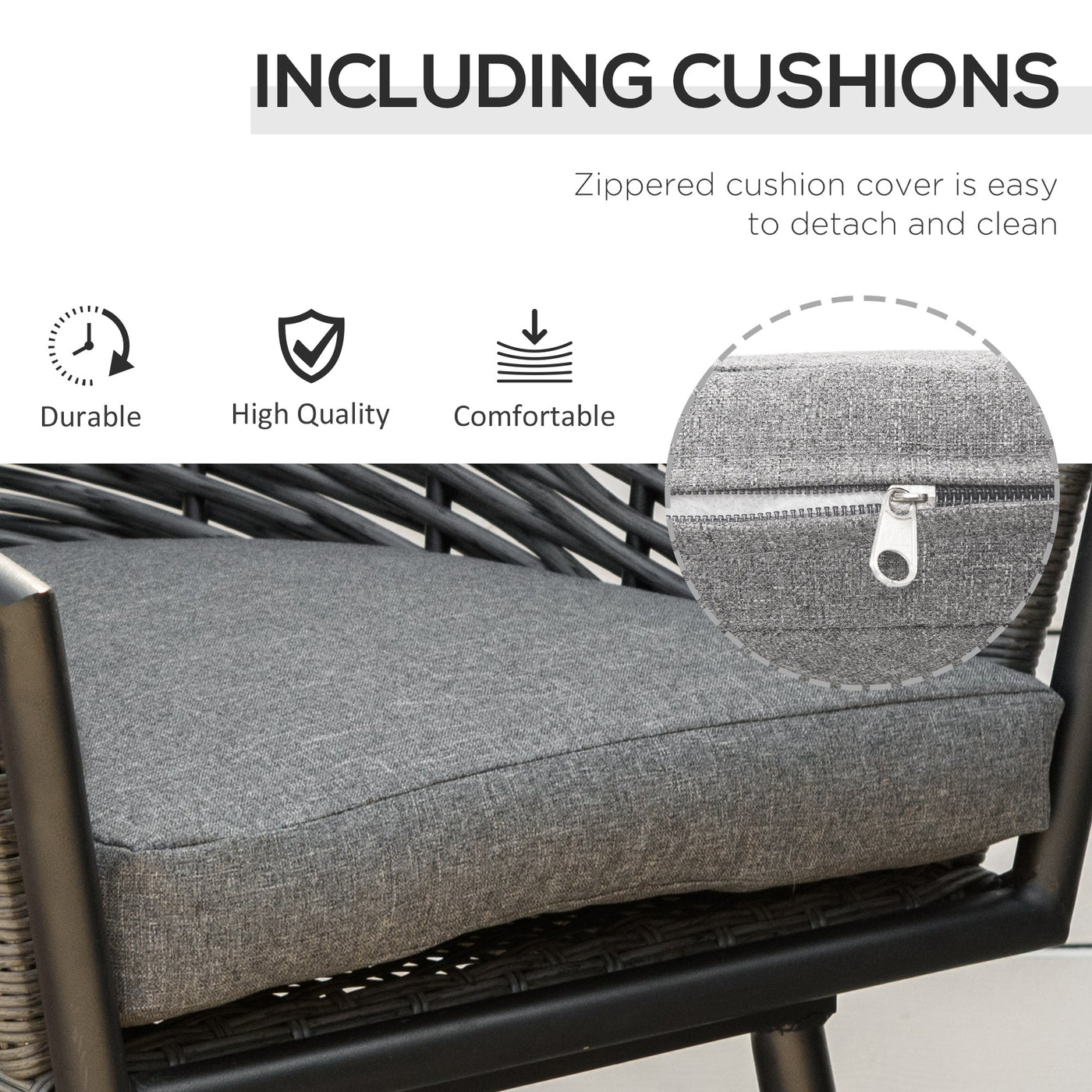 Outsunny 3 Pieces Rattan Bistro Set, Wicker Garden Furniture Set with Round Glass Top Coffee Table and Chairs, Washable Cushions for Outdoor, Patio, Balcony, Grey - Grey