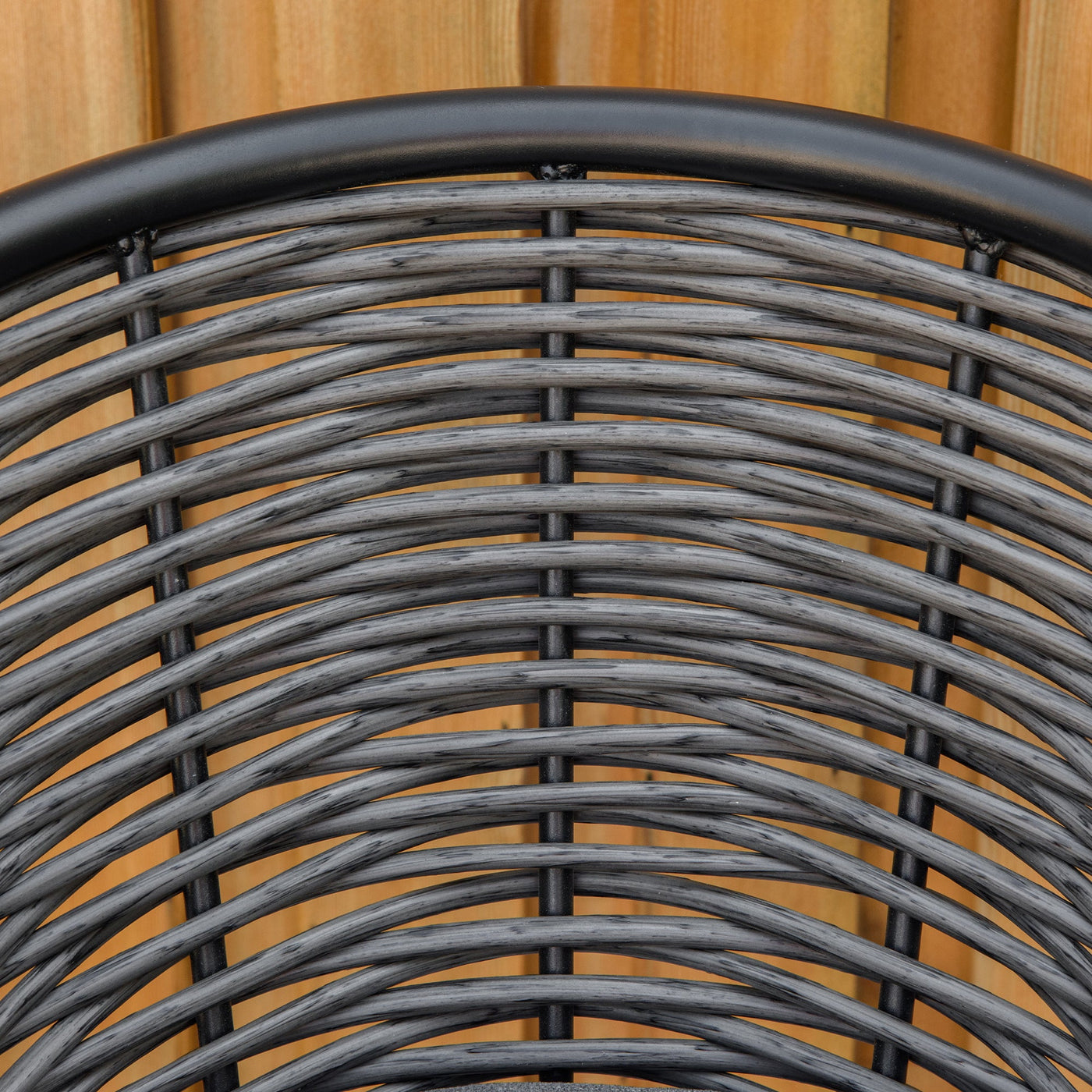 This 3 pieces patio resin wicker bistro set from Outsunny is a good choose for your interior and outdoor space. The set includes two ergonomically designed chairs and a round coffee table. Made of round PE rattan wicker and durable steel frame. The tempered glass tabletop allows easy cleaning with a damp cloth, this garden furniture sets for 2 offers reliable durability that naturally withstands most weather conditions. Let this bistro set from Outsunny brings you outdoor leisure time.