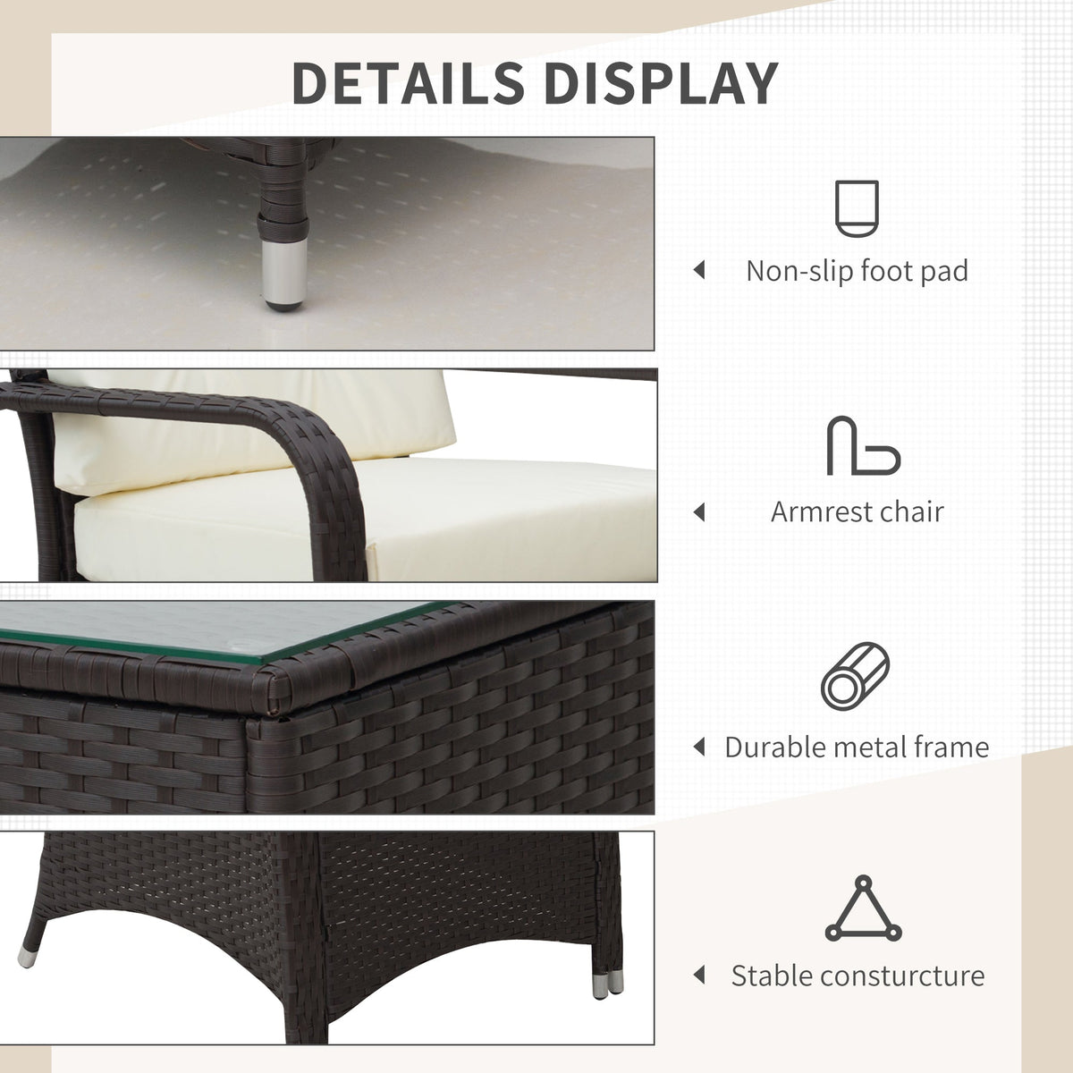 Outsunny 3 Pieces Rattan Bistro Set with Furniture Cover, Wicker Garden Furniture Set, Glass Top Coffee Table and Chairs with Cushions for Outdoor, Patio, Balcony, Cream White - Cream