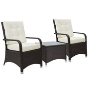 This outdoor bistro set made of PE Rattan is an ideal choice for your garden, patio or balcony. Combined with an steel frame structure and covered with rattan, this set is the optimal set to have. Comes with two seats with cushions and a table with a glass top to place drinks and magazines. The stylish modern design can fit into any style of your home and garden.