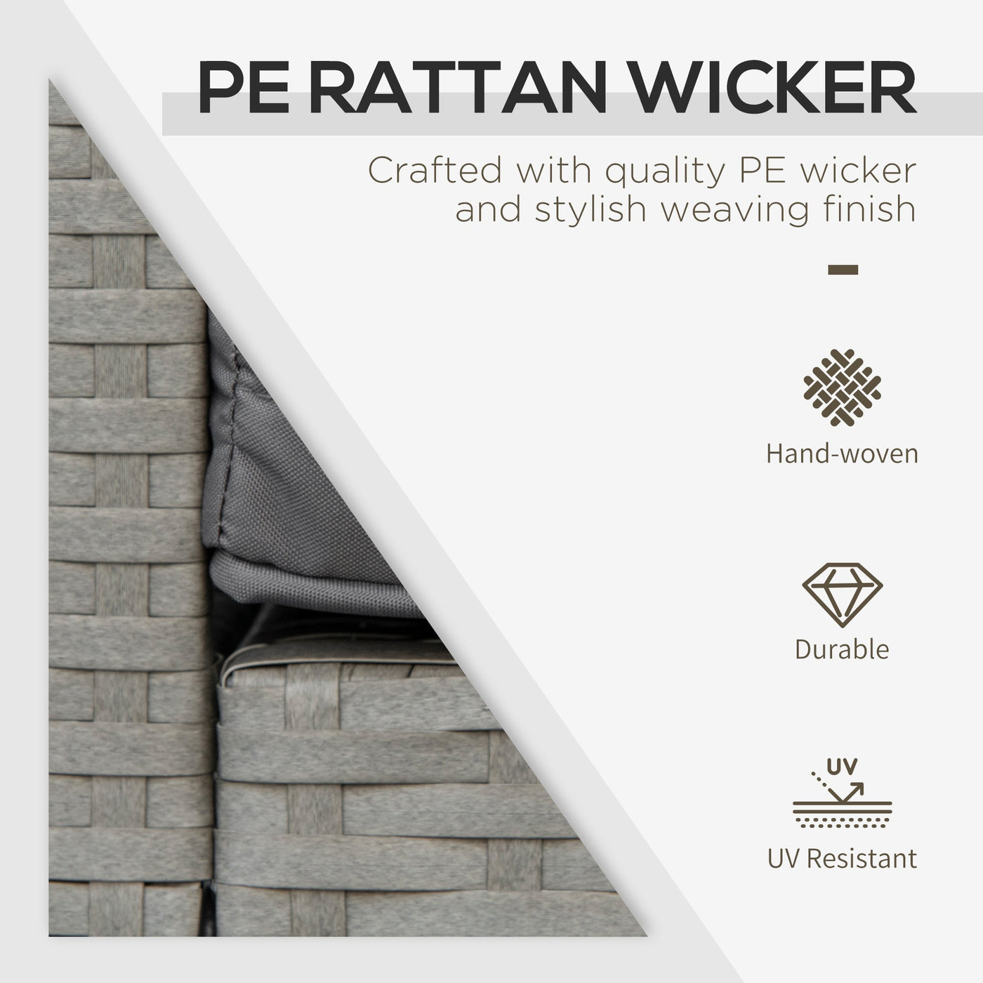 Start the season off the right way - do it with this three-piece garden set from Outsunny. Formed of two armchair-seats and a matching table, you can easily enjoy the sun with a friend. Metal forms a strong frame for all pieces, where PE wicker is wrapped around for an on-trend rattan look. The table is fitted with a tempered glass top for a solid and safe holding place. Both chairs come with thick padded cushions - simply sit down and enjoy the fresh air.