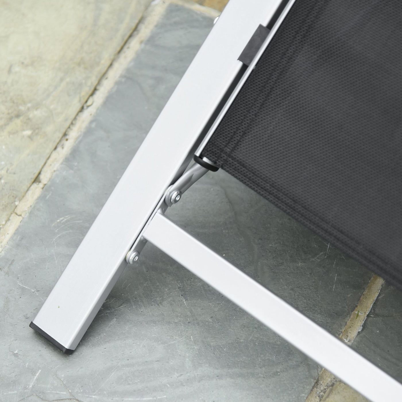 Refresh your outdoor space with the garden recliner chairs set of 3 Outsunny. Using metal for the frame of both chairs and a table, the structure is tough and durable, so it can be used every day. The sun loungers for garden are wrapped in breathable mesh for comfort and smoothness on the skin. The table comes with a thick glass top for a safe and secure holding place. Stylish and functional, this set is perfect for patios, gardens, balconies and any other outdoor space. Assembly is required.