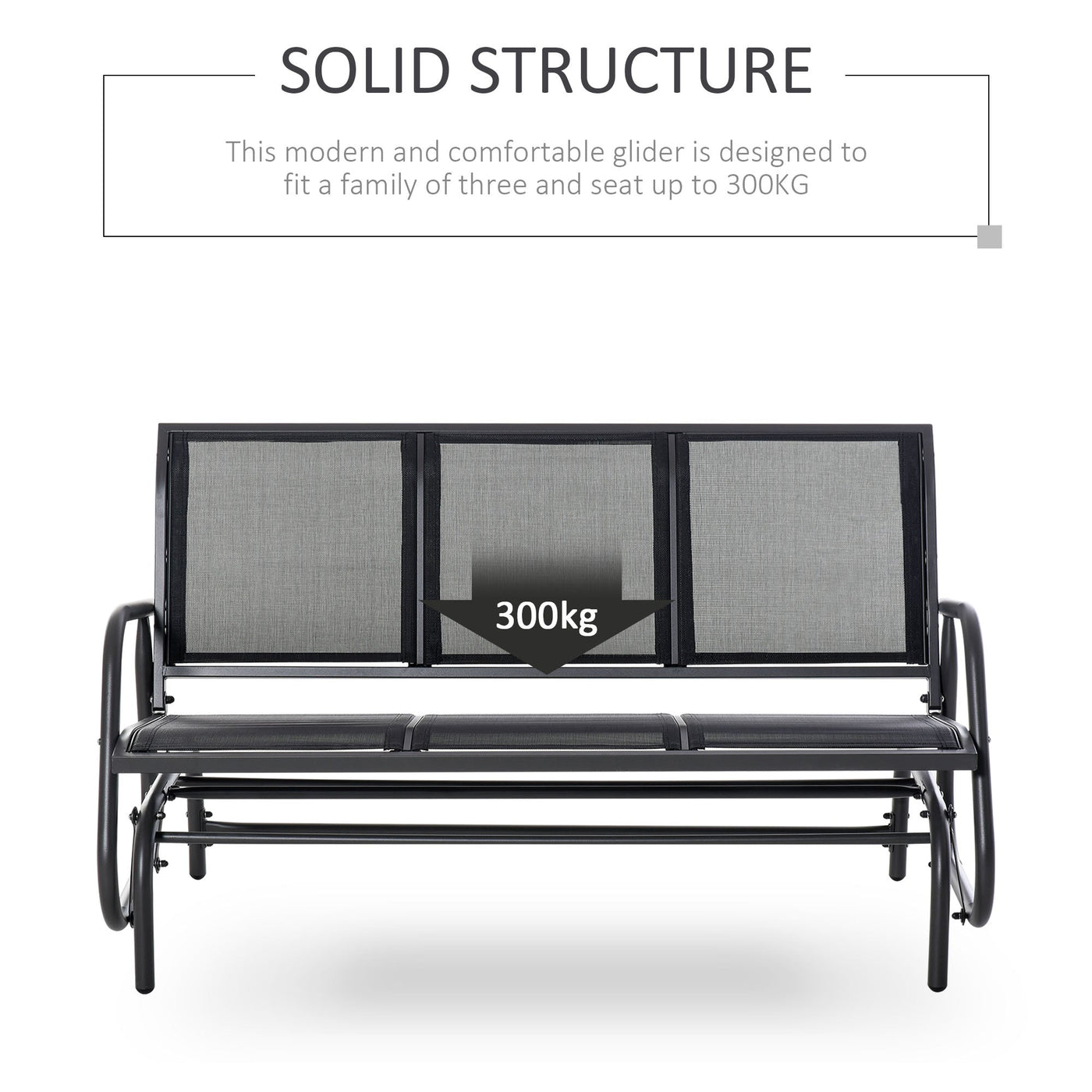 Outsunny 3-Seat Glider Rocking Chair for 3 People Garden Bench Patio Furniture Metal Frame, Black - Black