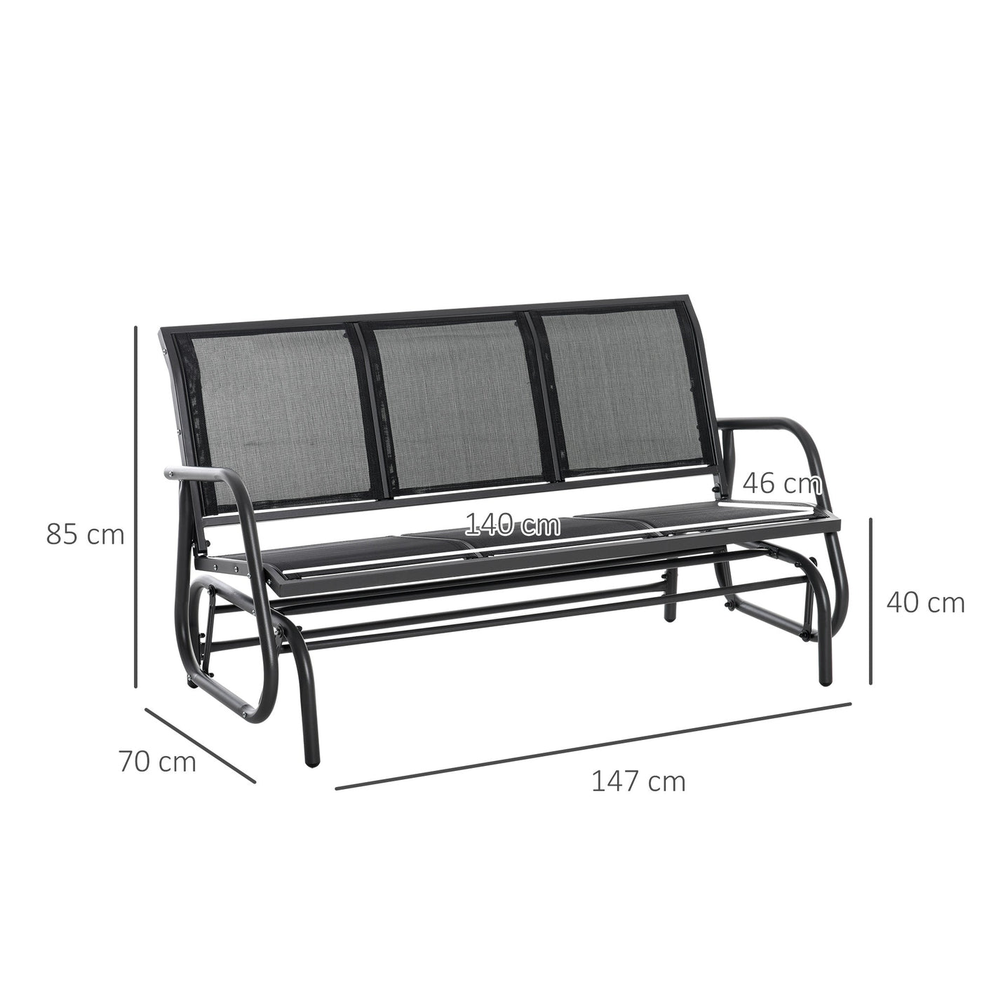Unwind outdoors the effortlessly smooth way with this gliding bench from Outsunny. Using powder coated metal for a strong and robust frame, it is covered with mesh fabric for a breathable seat and back. Curved back and armrests support your body. The frame is securely attached to the base, letting it rock back and forth smoothly for an enjoyable experience every time.