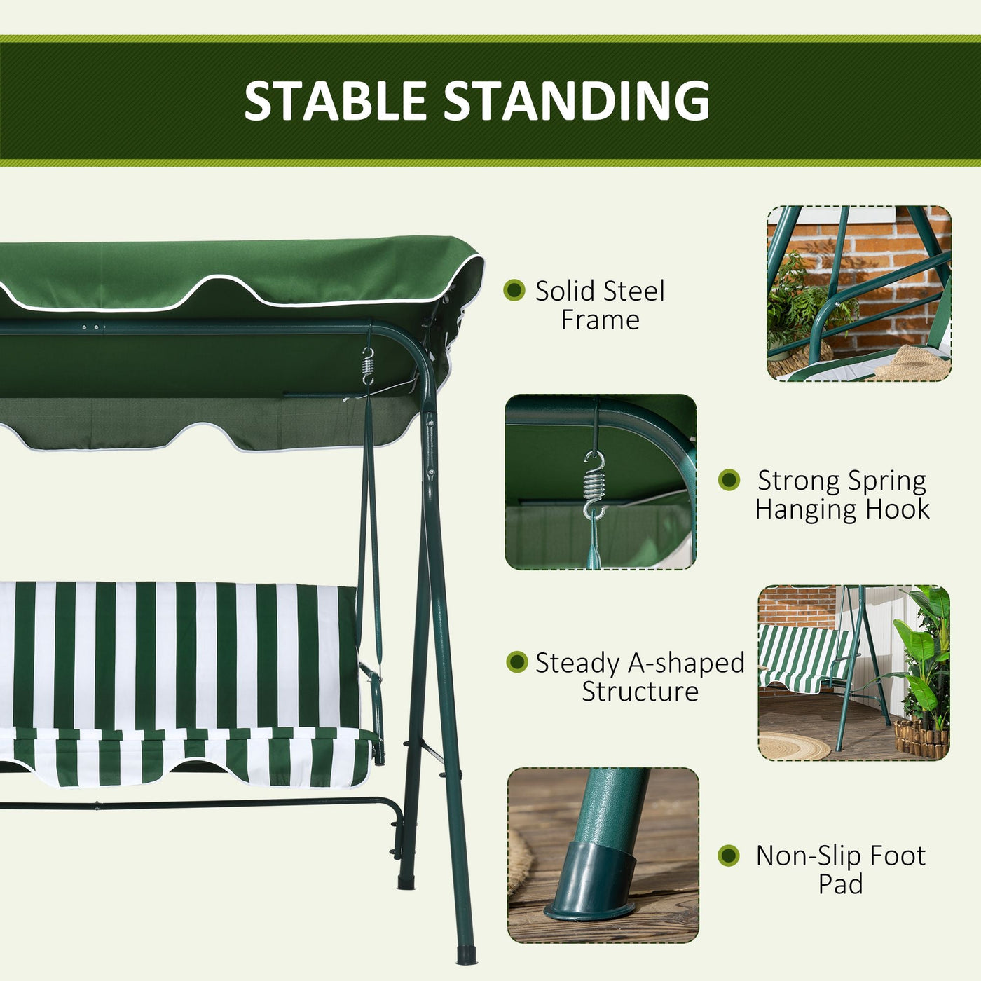 Outsunny 3-Seat Swing Chair Garden Swing Seat with Adjustable Canopy for Patio, Green - Green