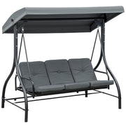 Outsunny 3 Seater Canopy Swing Chair, 2 in 1 Garden Swing Seat Bed, with Adjustable Canopy and Metal Frame, Dark Grey - Dark Grey