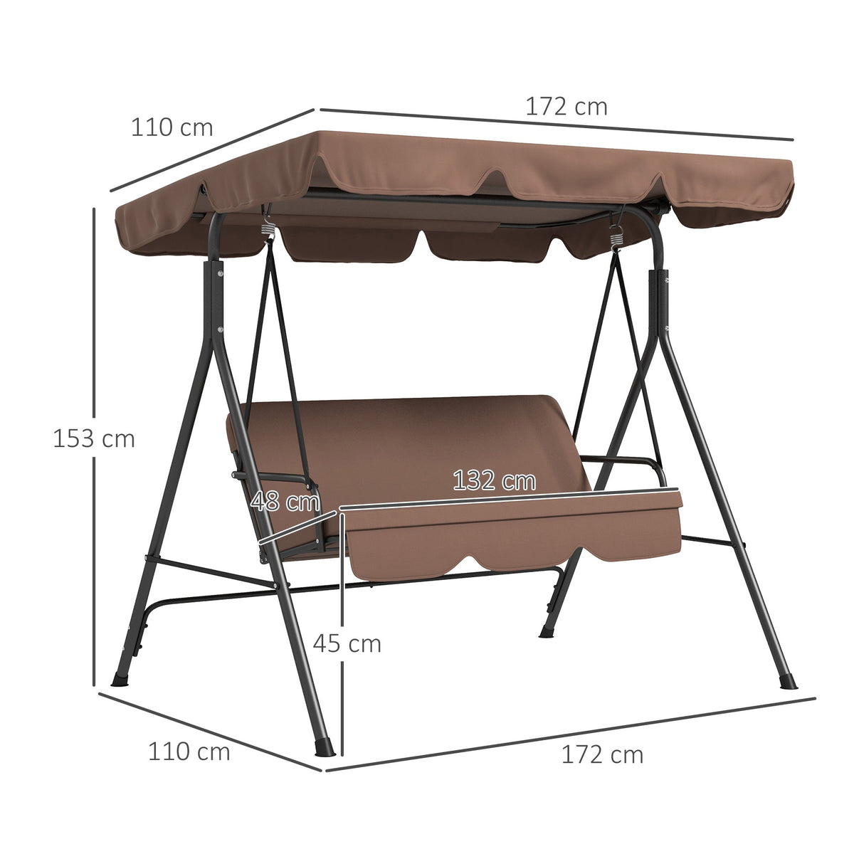 Outsunny 3 Seater Garden Swing Chair, Outdoor Swing Chair with Adjustable Canopy, Mental Frame & Cushions, Brown - Brown