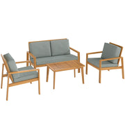 Outsunny 4-Piece Wooden Garden Furniture Set with Cushions - Teak