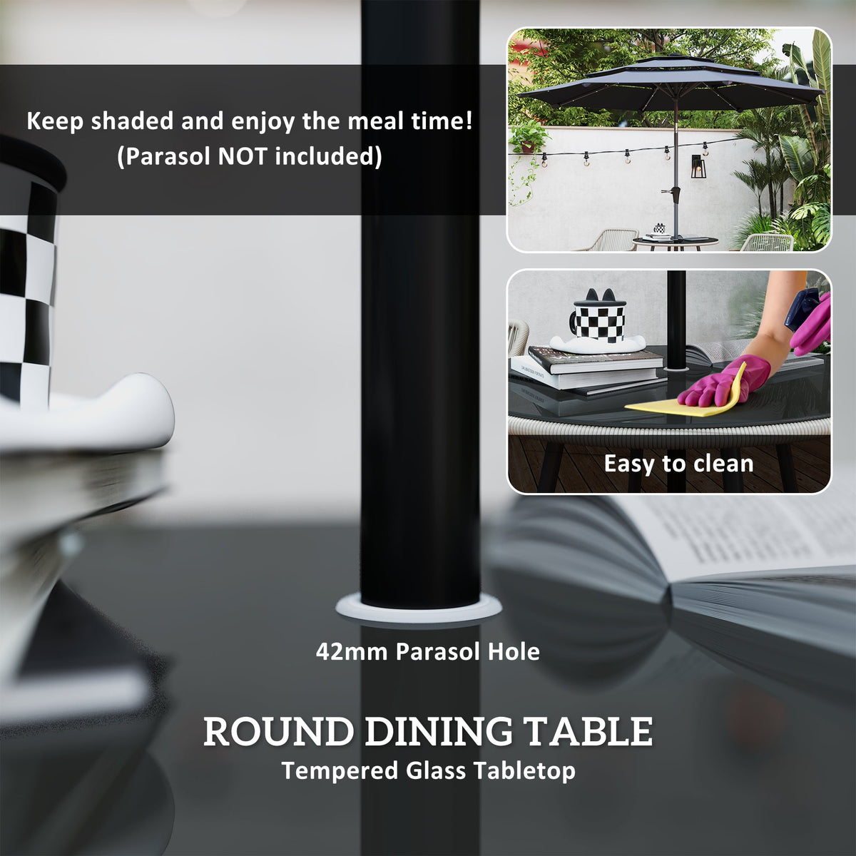 - Tempered glass-top table with 4.2cm middle hole for parasol