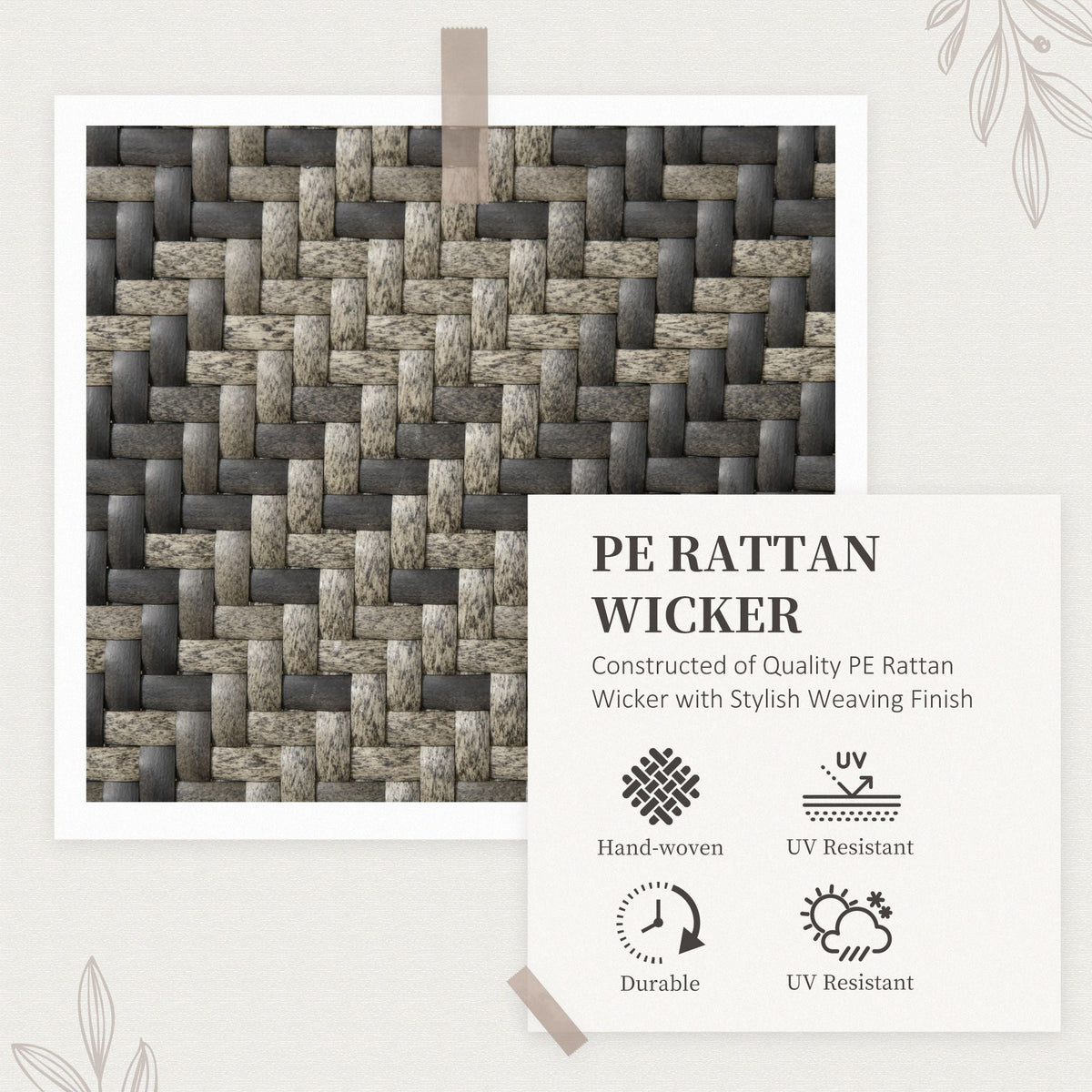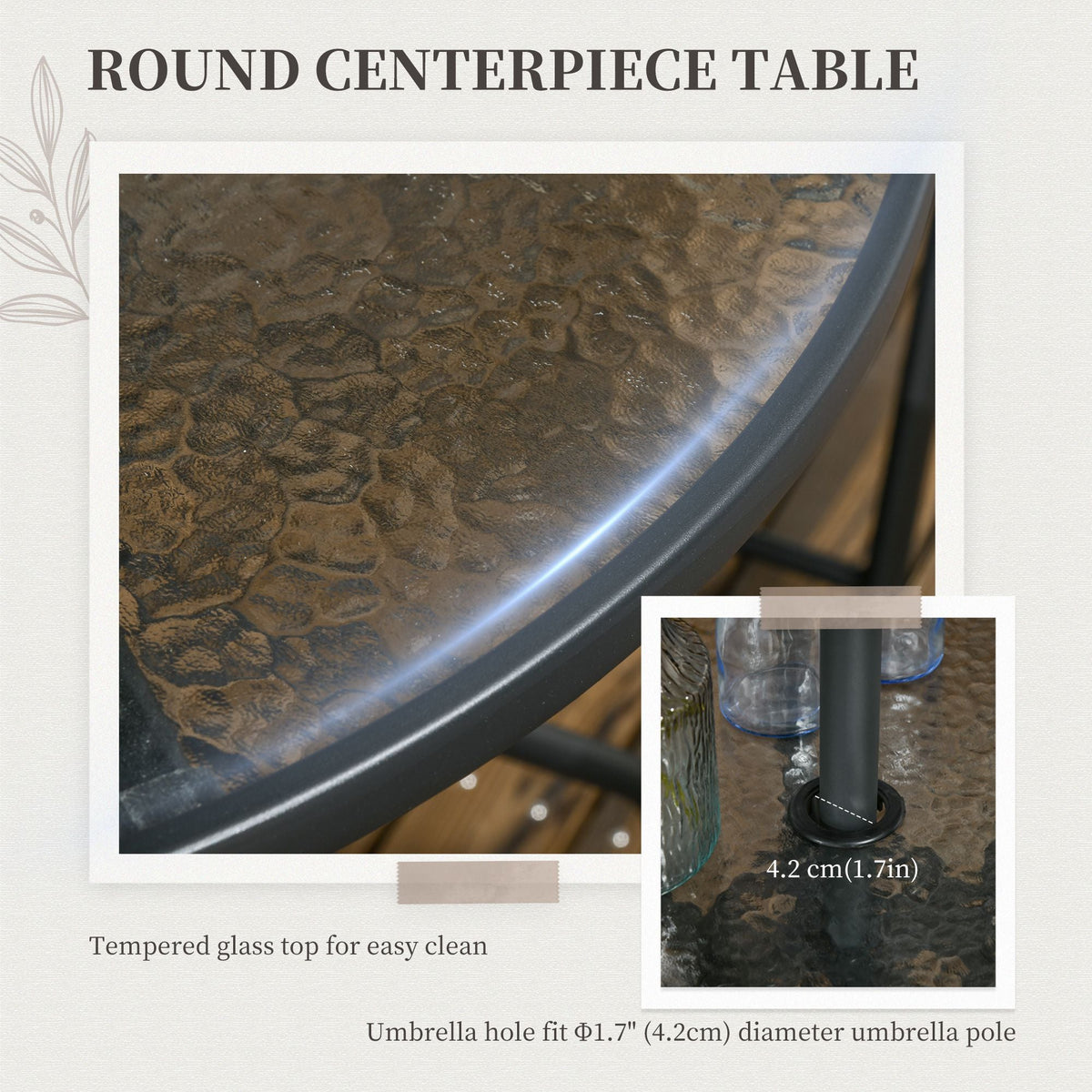 Outsunny 4 Seater Rattan Dining Set, Rattan Garden Furniture Set with Parasol Hole, Outdoor Dining Table and Chairs with 4 Armchairs, Round Glass Top Table for Patio, Balcony, Mixed Grey - Grey