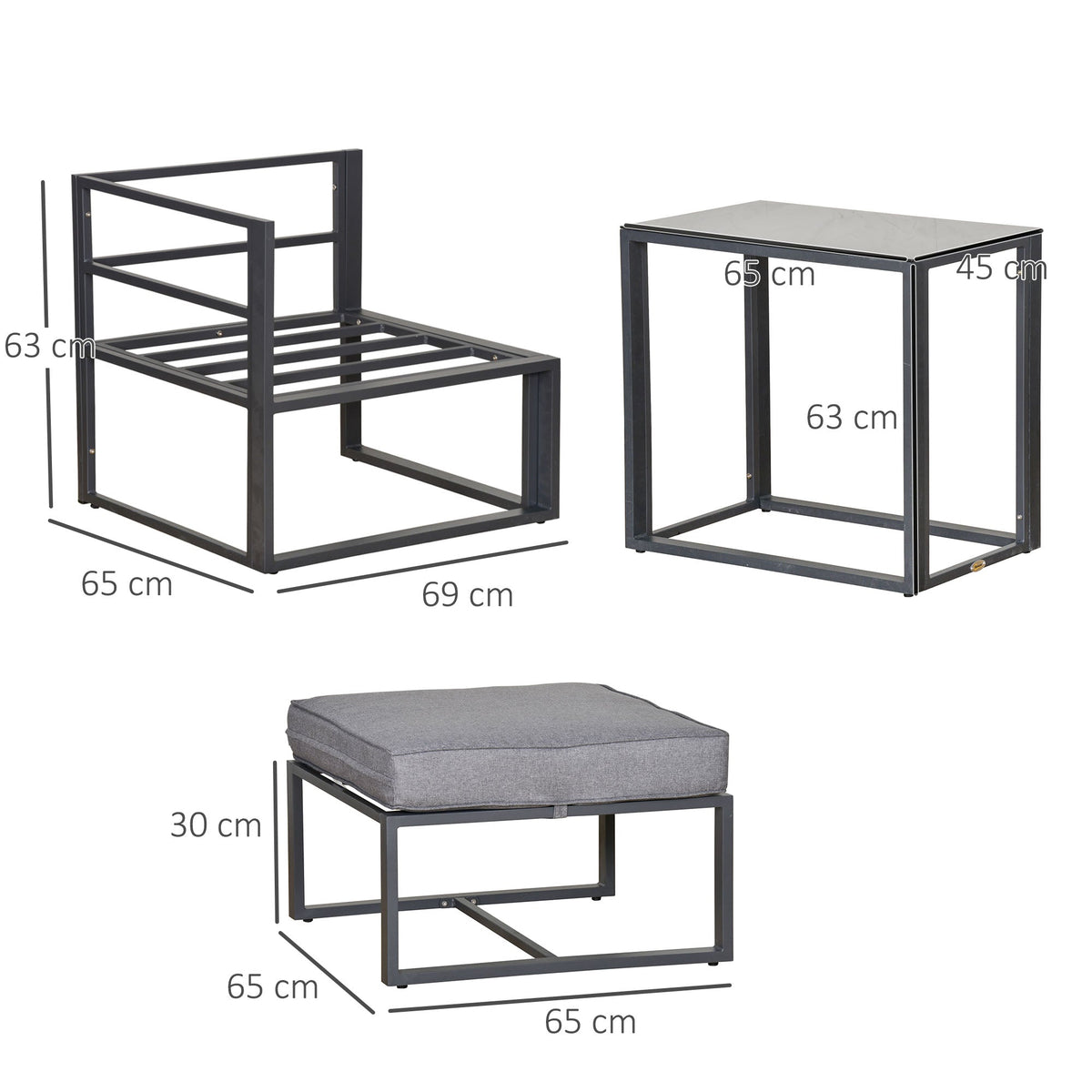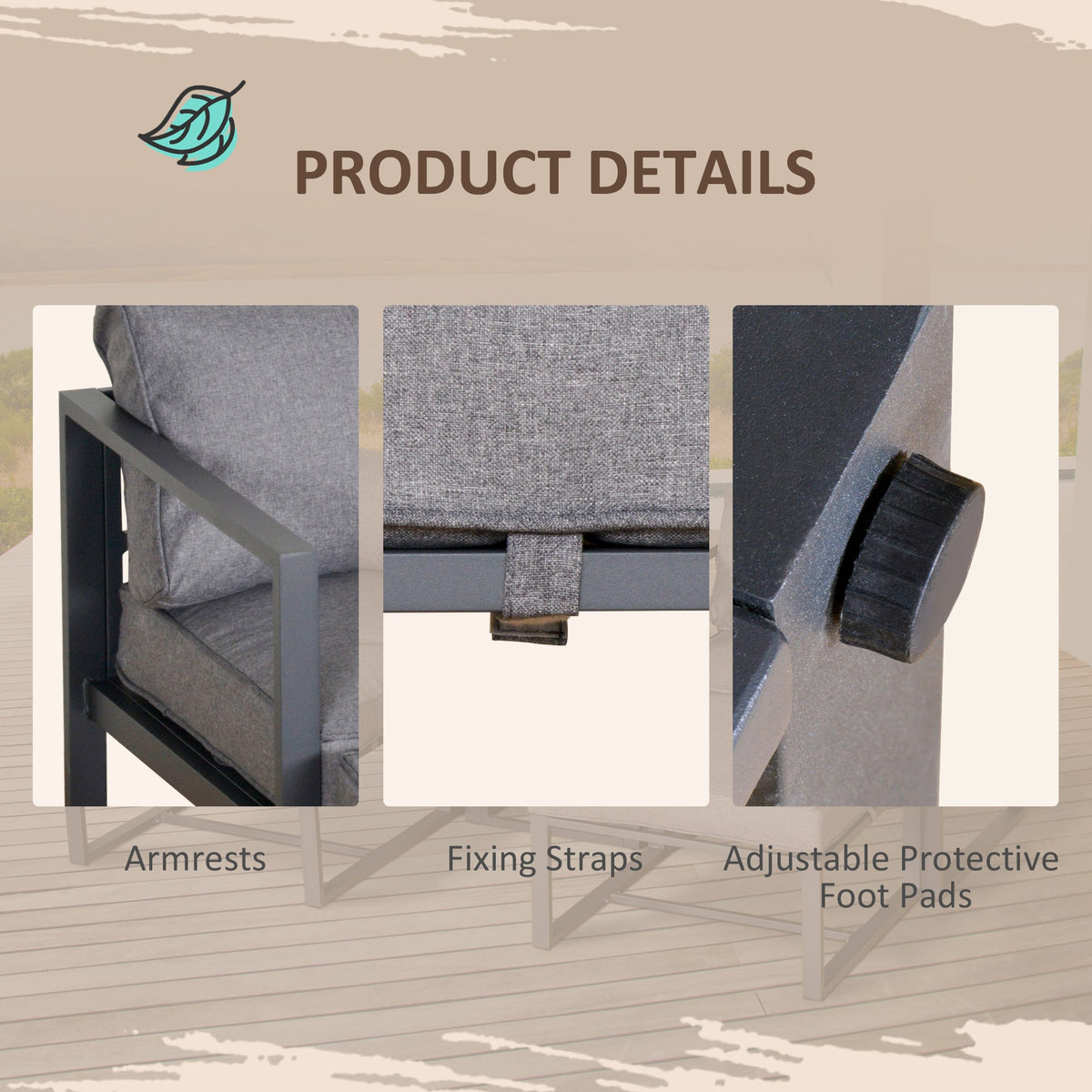 Bring style and comfort into your outdoor space the easy way - go for this double-person aluminium garden sofa from Outsunny. The patio set comes with two large armchairs, two large footstools and a table. The thick padded cushions keep you comfortable. The minimal look means it is unimposing and blends well with your current garden furniture. The aluminium garden furniture will be a stylish and functional addition to any outdoor space.