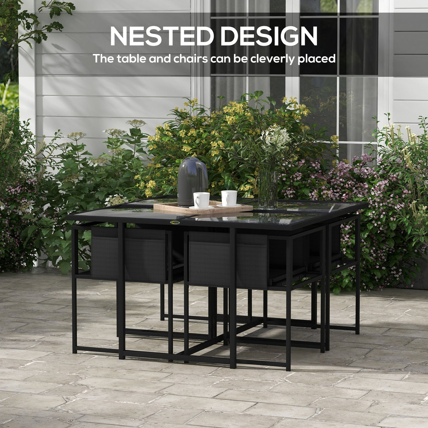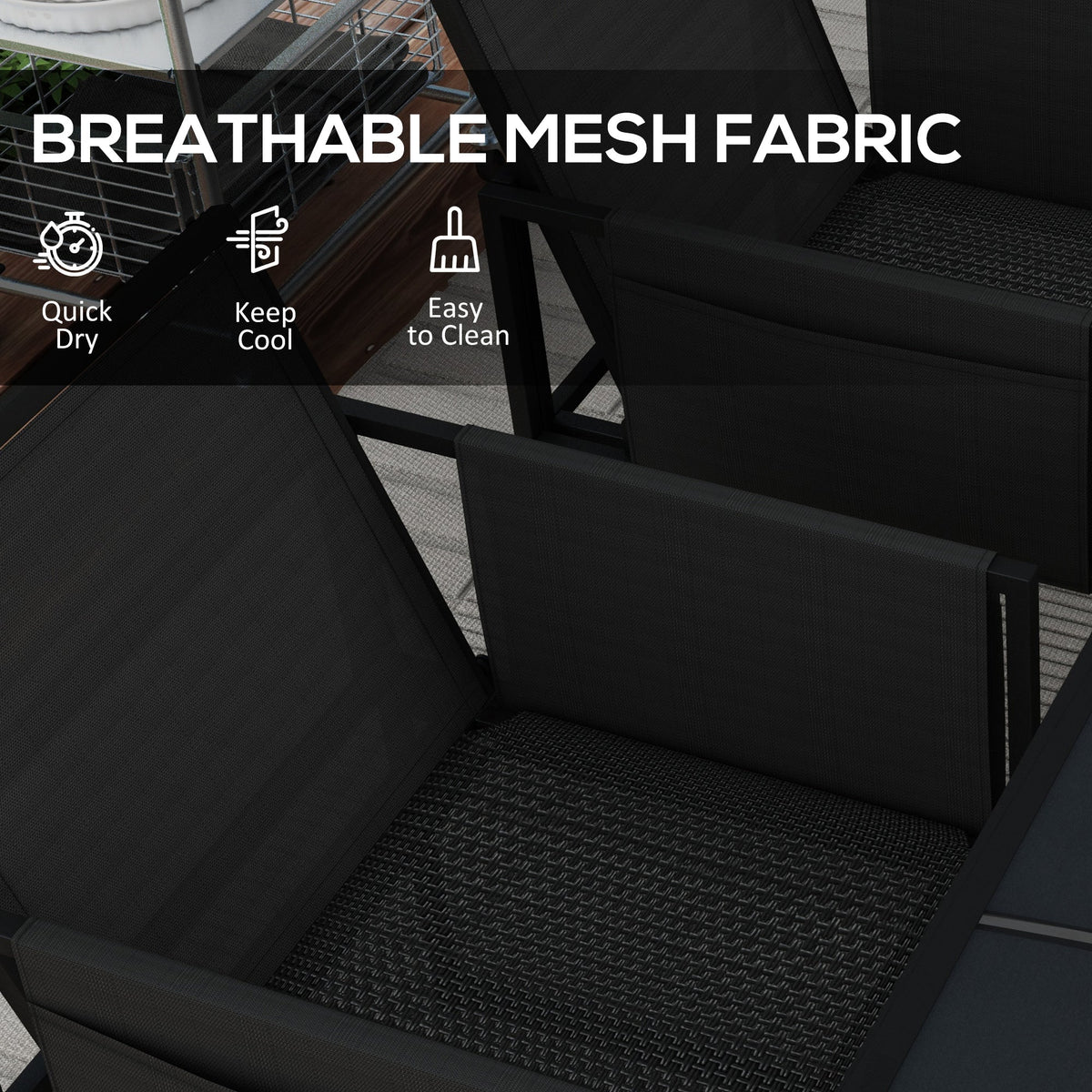 Outsunny 5 Piece Garden Dining Set with Breathable Mesh Seat, Adjustable Backrest, Tempered Glass Table Top for Patio, Black - Black