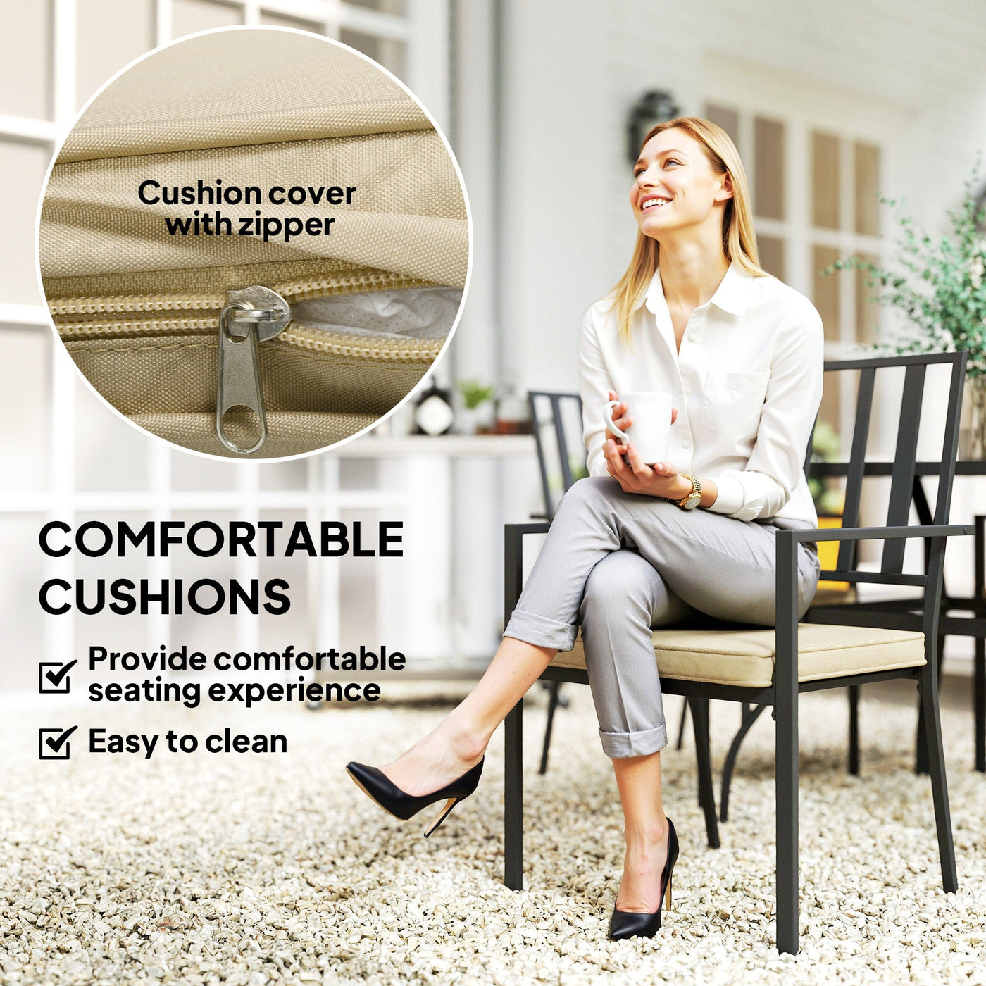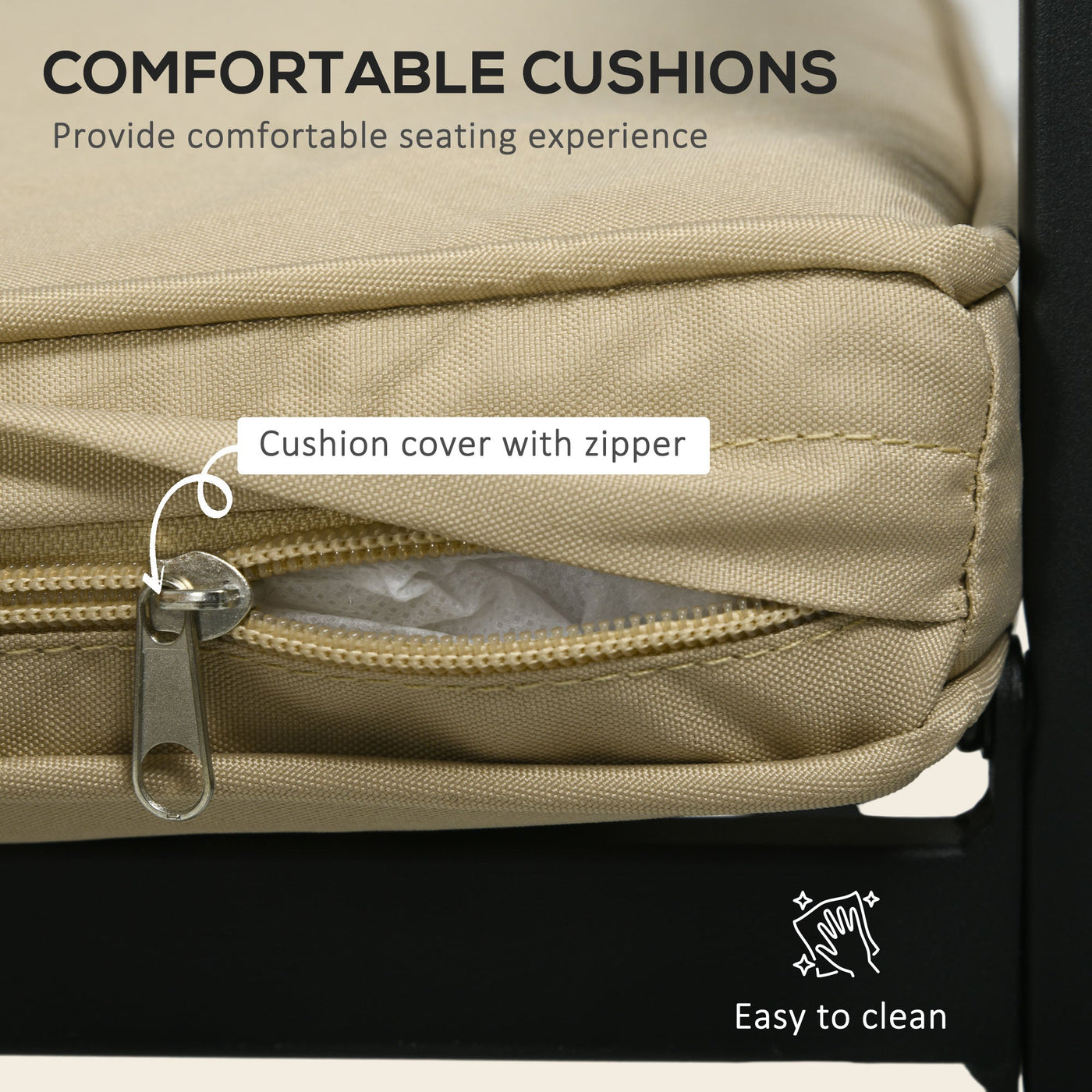 Make it minimal for outdoor catch ups with this Outsunny set. Made from metal, the four chairs and square dining table offer room to bring you and company together. The square dining table features a 50mm round hole in the centre - this holds a 38-48mm parasol pole: keep shaded as you relax. Set complete with cushions to sit comfortably.