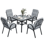 Outsunny 5 Pieces Outdoor Square Garden Dining Set w/ Tempered Glass Dining Table 4 Cushioned Armchairs, Umbrella Hole, Grey - Grey