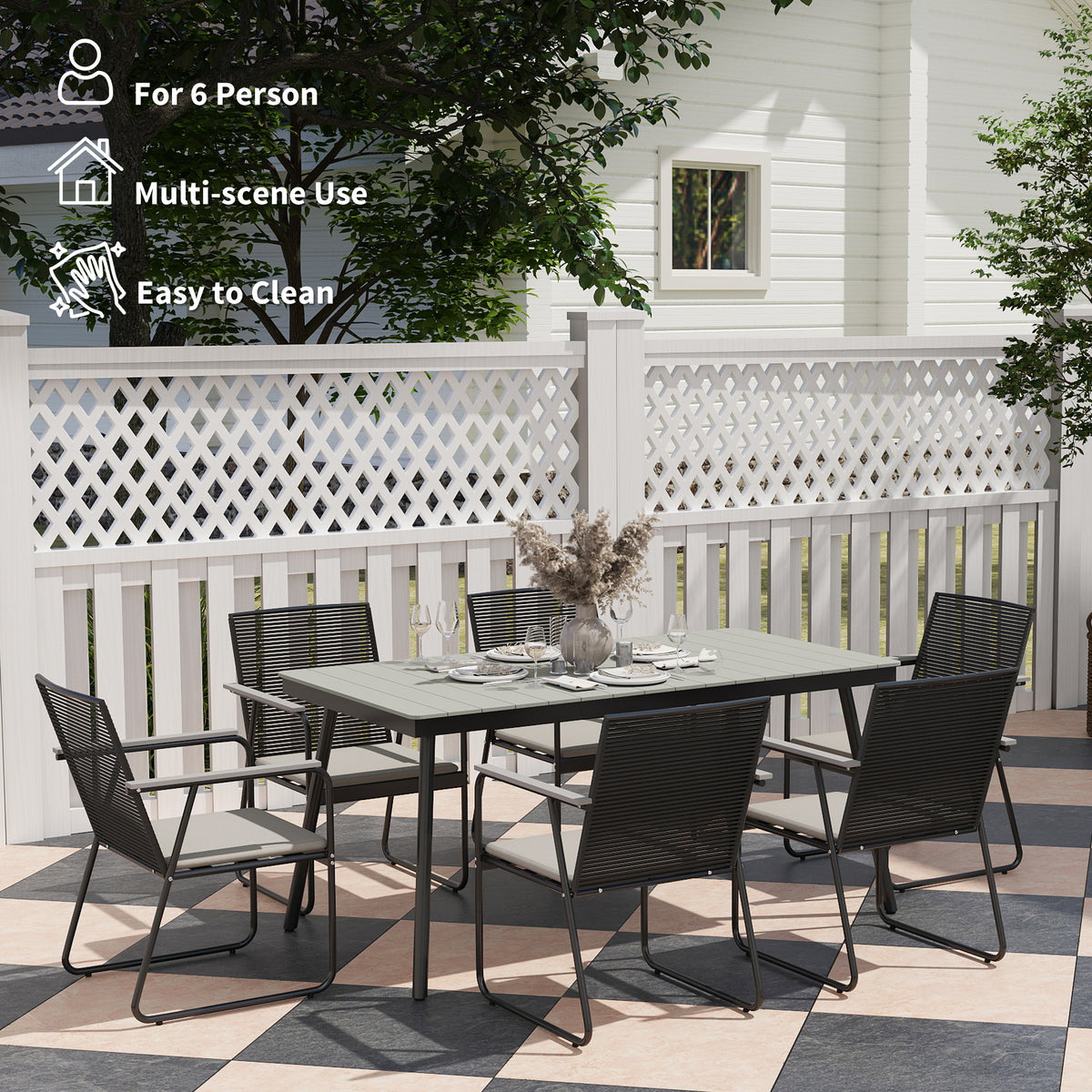 Outsunny 6 Seater Garden Dining Set with Soft Cushions, Rattan Backrest, Rectangular Plastic Top, Garden Furniture Set, Outdoor Dining Table and Chairs for Patio, Balcony, Poolside, Grey - Grey