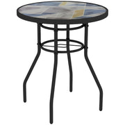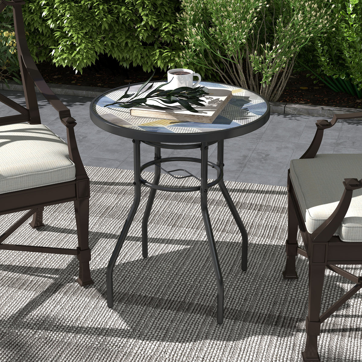 Transform your garden into a charming bistro setting with this Outsunny balcony table. The tempered glass tabletop is strong and safe, printed with a pattern design. The metal frame is strong and supportive, finished with four legs for balance.