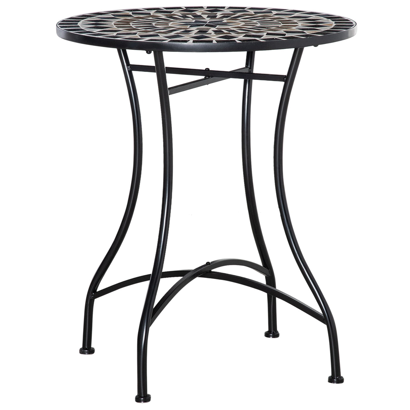 Outsunny 60cm Mosaic Outdoor Patio Table - Black - Black
