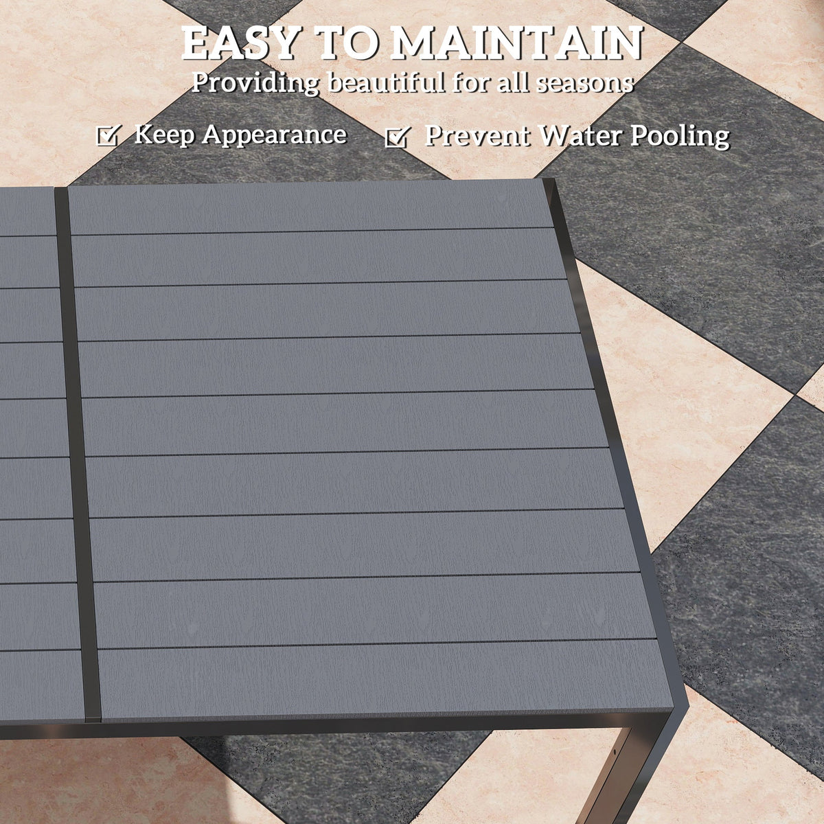 Outsunny 7 Piece Garden Dining Set, Outdoor Furniture Set with 6 Stackable Chairs and 150 cm Rectangle Table, WPC Slatted Top, Rust-Resistant Steel Frame, for Garden, Porch, Terrace - Grey