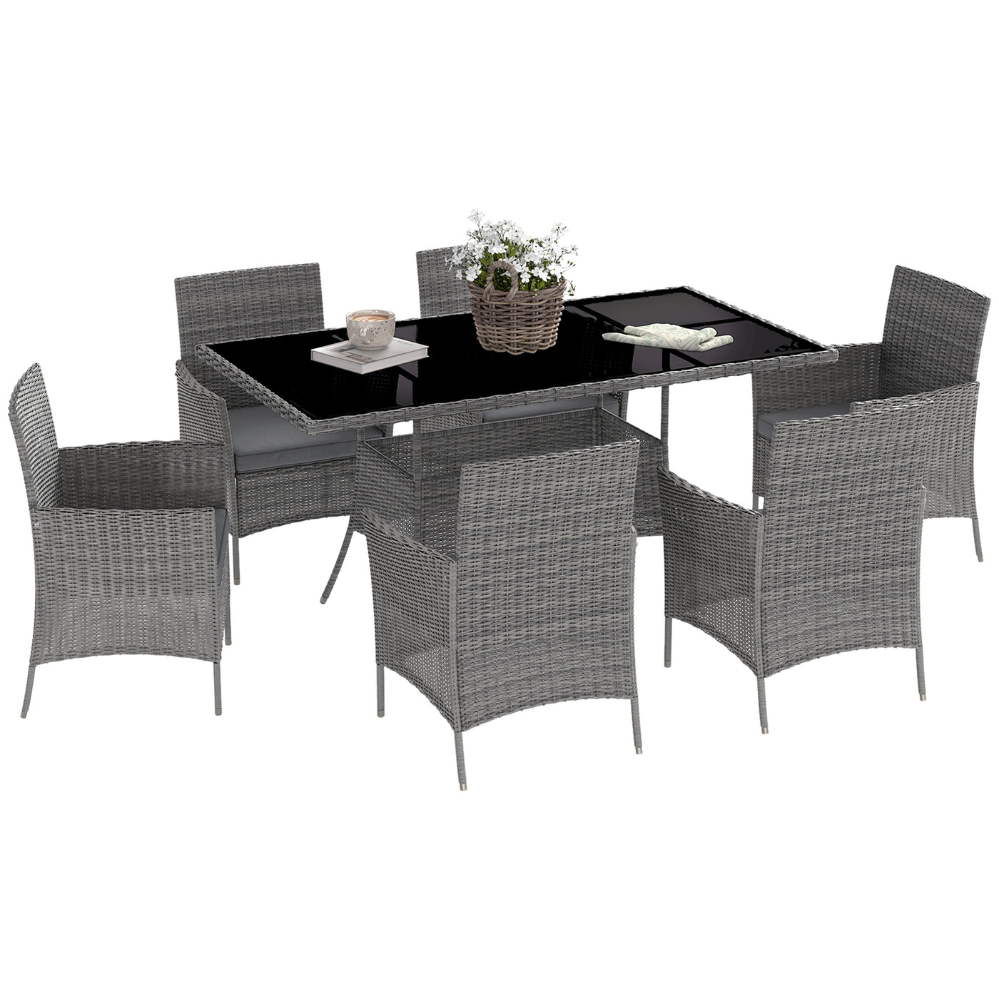 - 7 pieces of outdoor garden furniture consists of 1 table and 6 chairs