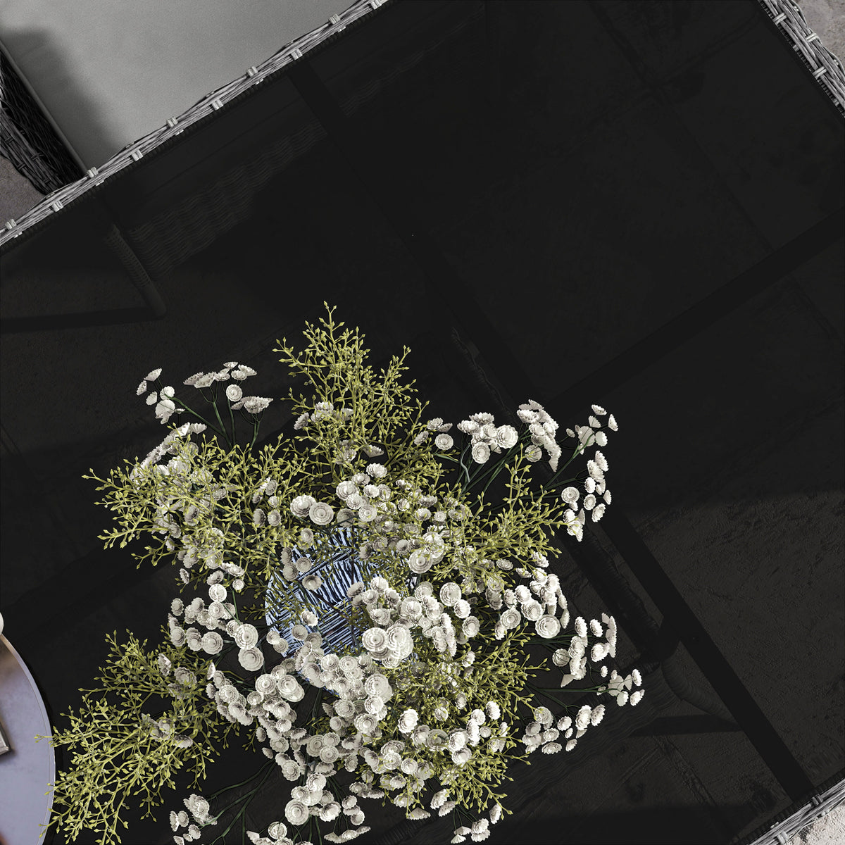- Table top with 5 mm thick black toughened glass
