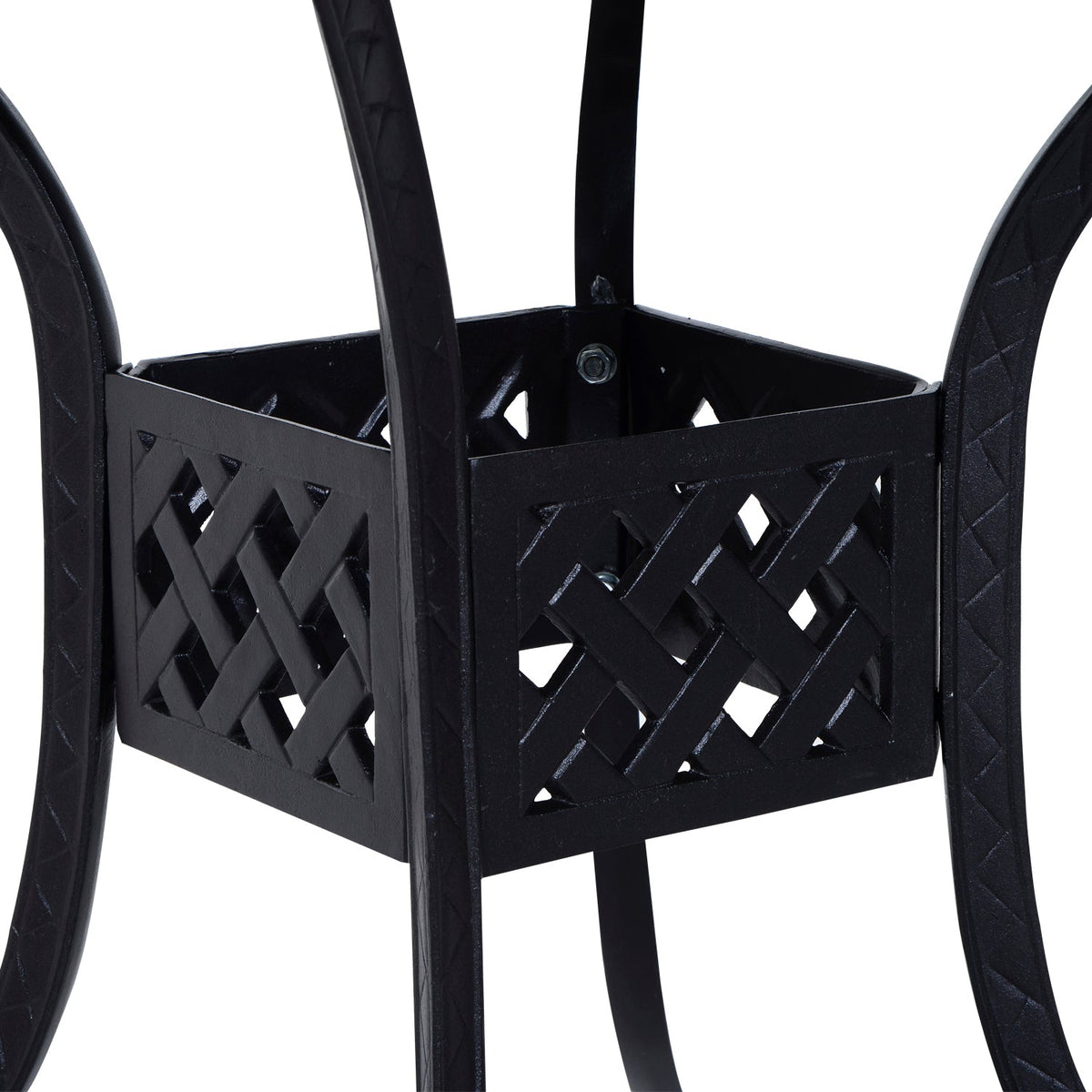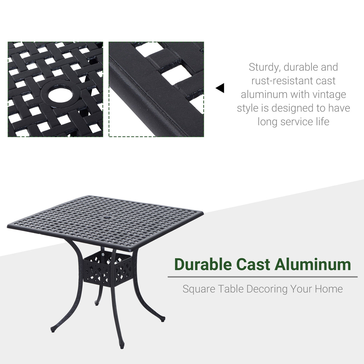 Outsunny 90cm Square Garden Table with Umbrella Hole, Aluminium Grid Motif Outdoor Dining Table for Garden Patio, Black - Black