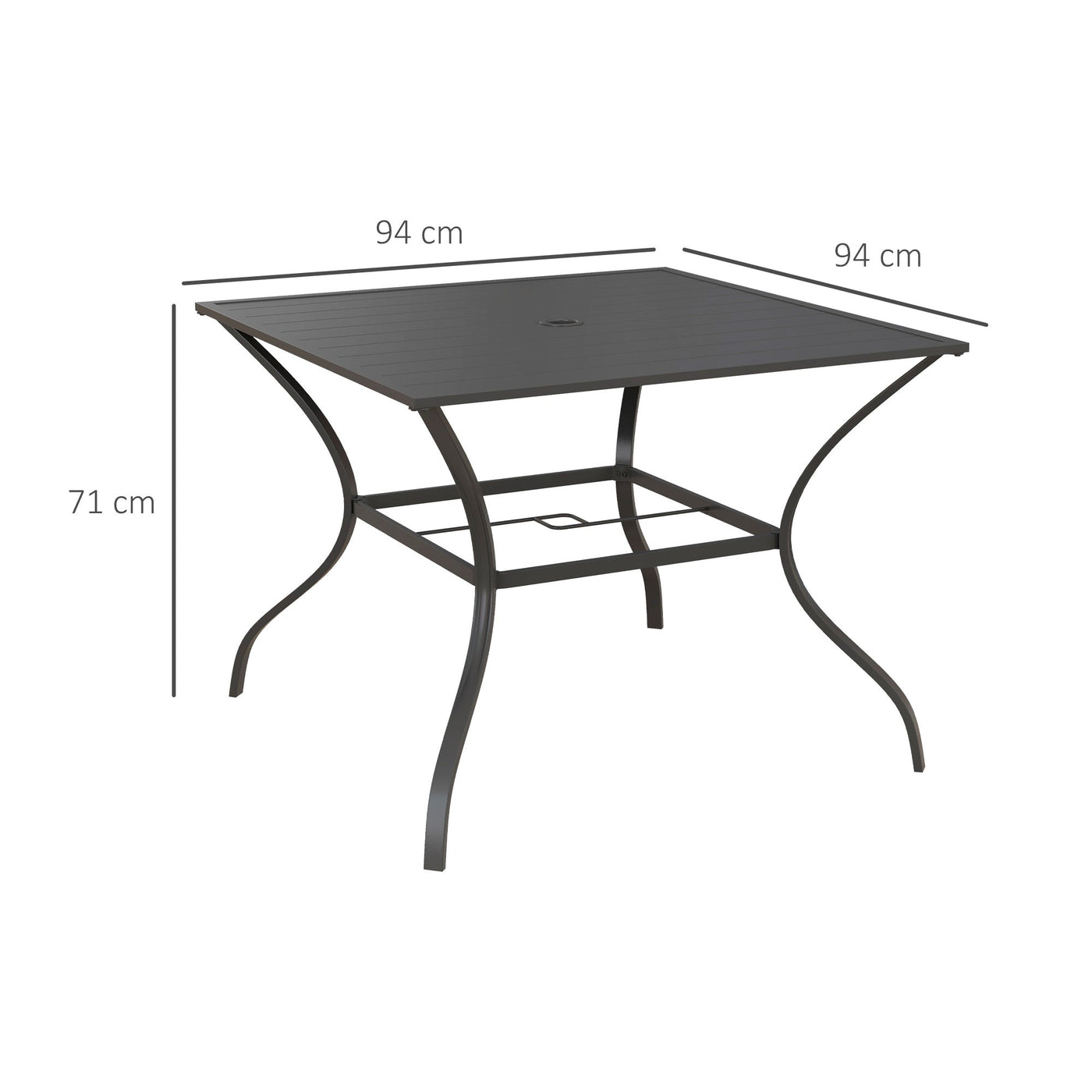 Outsunny 94 x 94 cm Garden Table with Parasol Hole, Outdoor Dining Garden Table for Four with Slatted Metal Plate Top, Dark Grey - Dark Grey