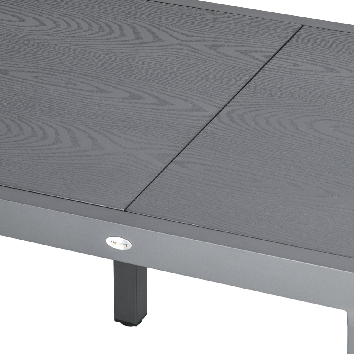 This Outsunny garden dining table effortlessly transforms from a standard four-seater, to a spacious six-seater: great for bringing out extra room when needed. Aluminium legs and a steel top make this a strong piece, suitable for outdoor use. Enjoy more of the outdoors with this versatile aluminium garden table.