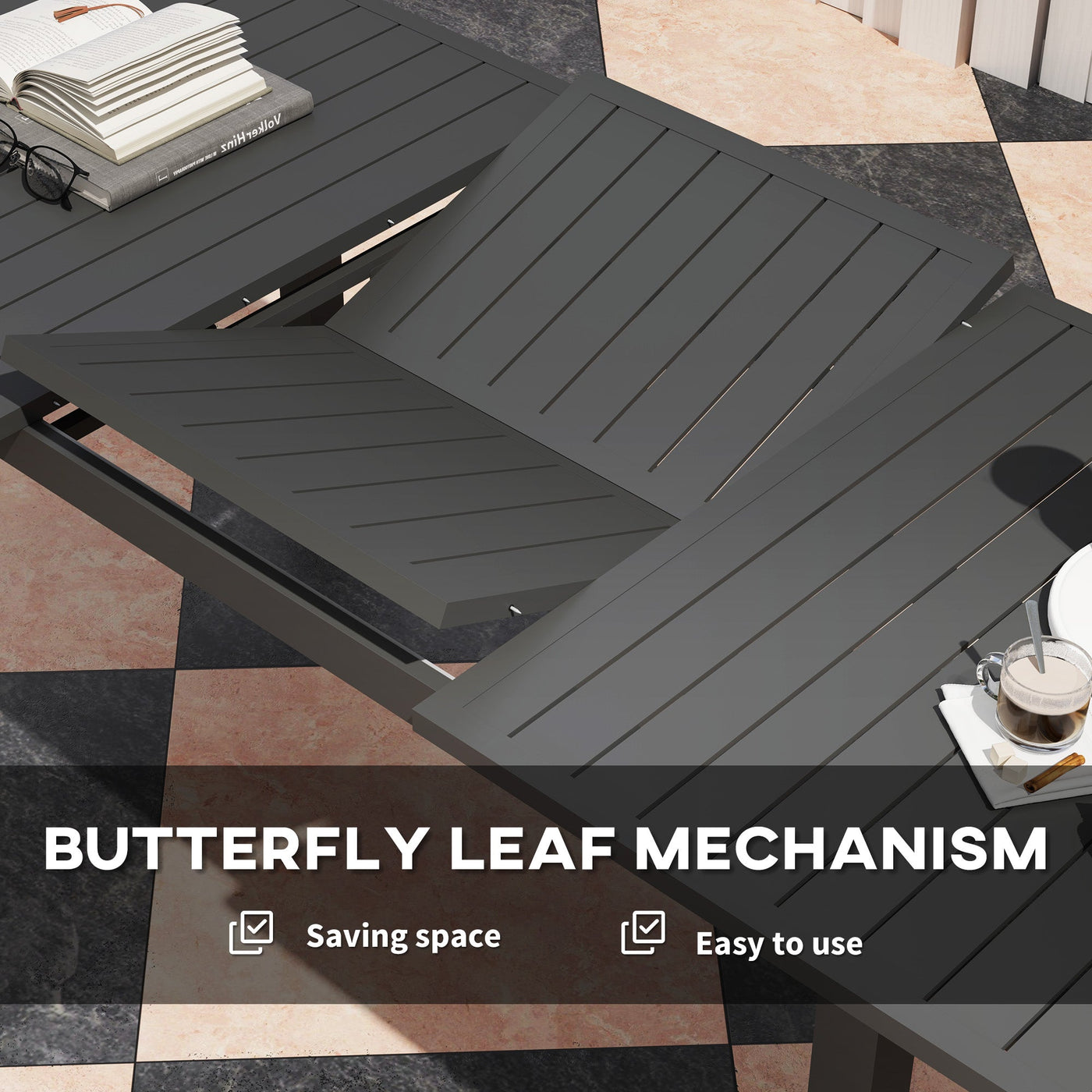 Outsunny Aluminium Extending Garden Table with Slatted Top for 6-8 Person, 160/220 x 90 x 73 cm, Grey - Grey