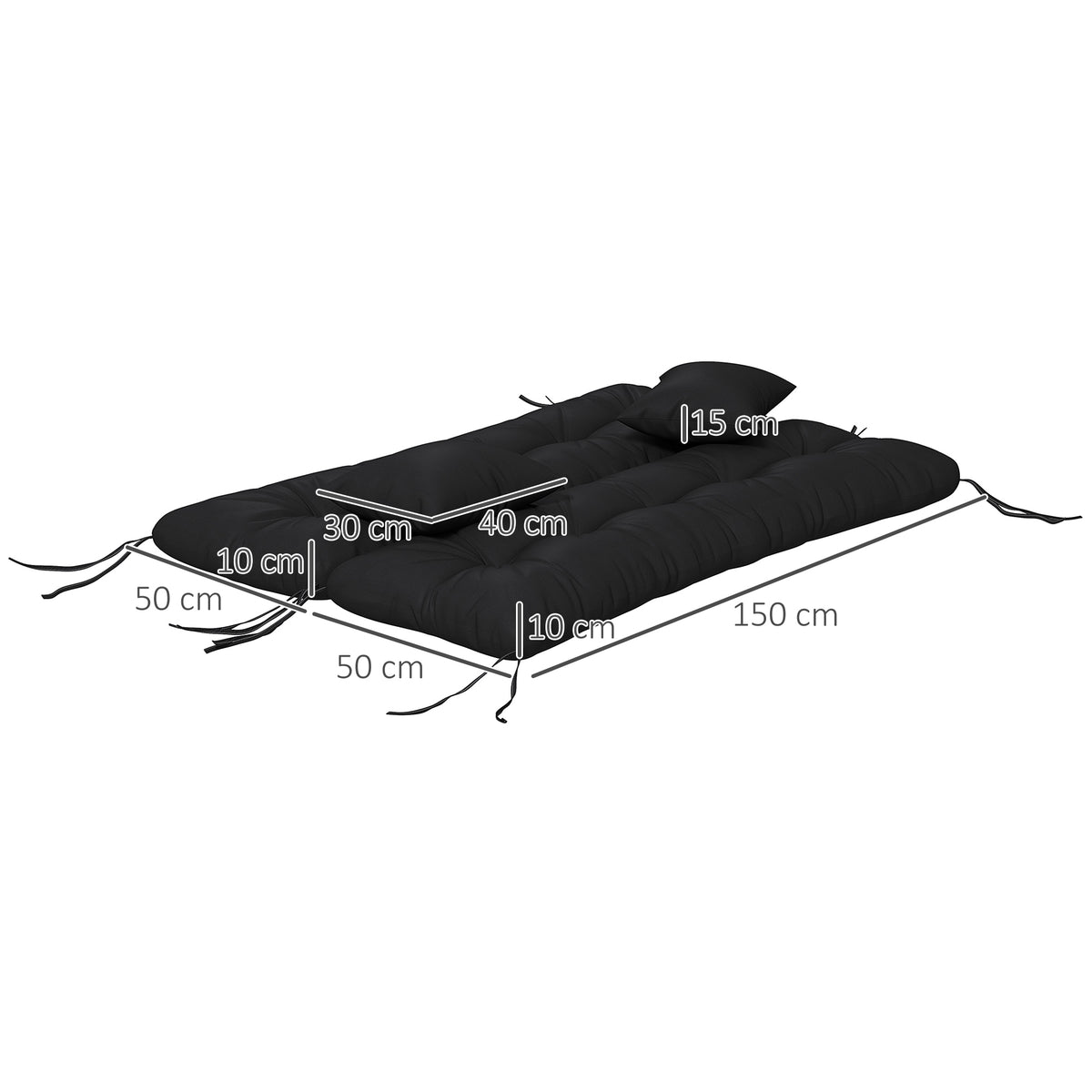 Outsunny Back and Seat Cushion Replacement with 2 Pillows, Patio Chair Cushions Set with Ties, Black - Black