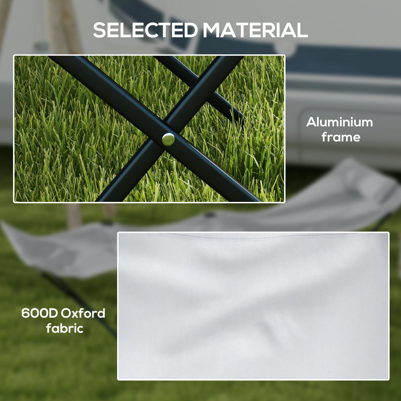 Outsunny Camping Bed for Adults, Single Folding Camp Bed, Portable Camping Cot with Side Pocket, Headrest and Oxford Seat for Outdoor, Travel, Fishing, Light Grey - Light Grey