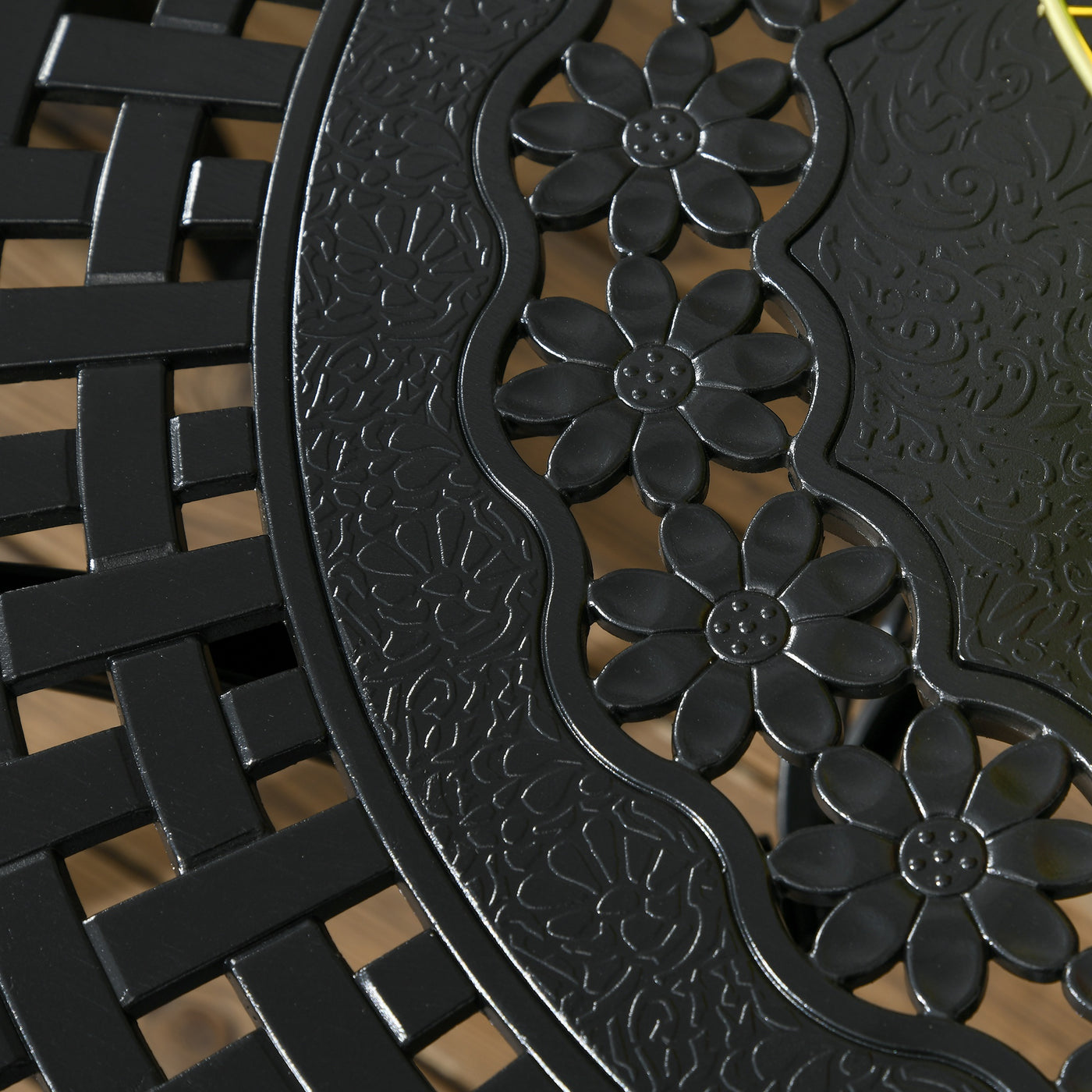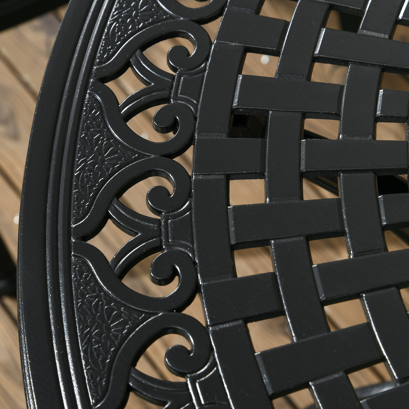 Outsunny Cast Aluminium 4 Seater Outdoor Dining Set with Cushions Parasol Hole Black - Black