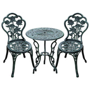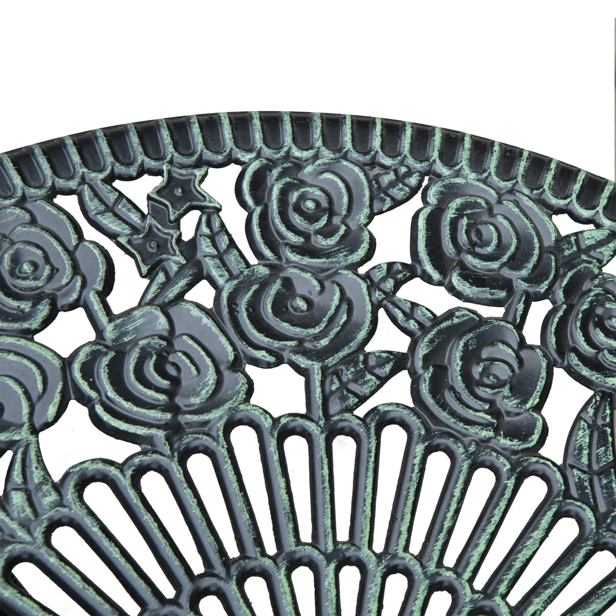Outsunny Cast Aluminium Outdoor Patio Garden Bistro Elegant Design Table Chair Set - Green (3-Piece) - Antique Green