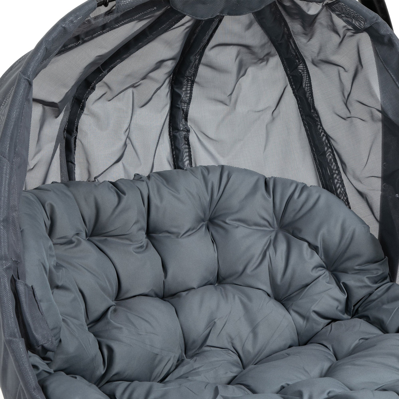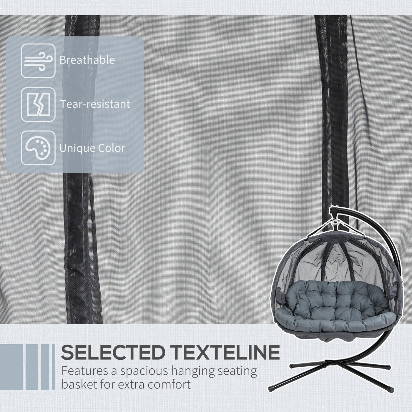Outsunny Double Hanging Egg Chair 2 Seaters Texteline Swing Hammock Chair with Stand, Cushion and Folding Design, for Indoor and Outdoor, Grey - Grey
