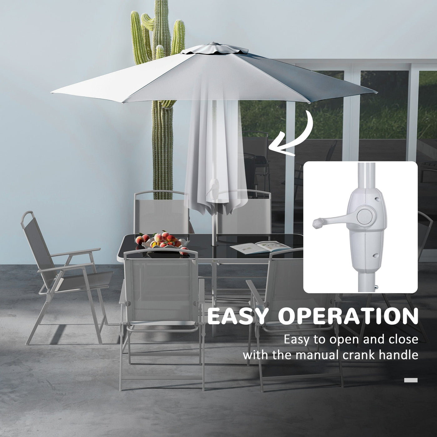 Outsunny Eight-Piece Garden Dining Set, with Chairs, Table and Parasol - Grey - Grey
