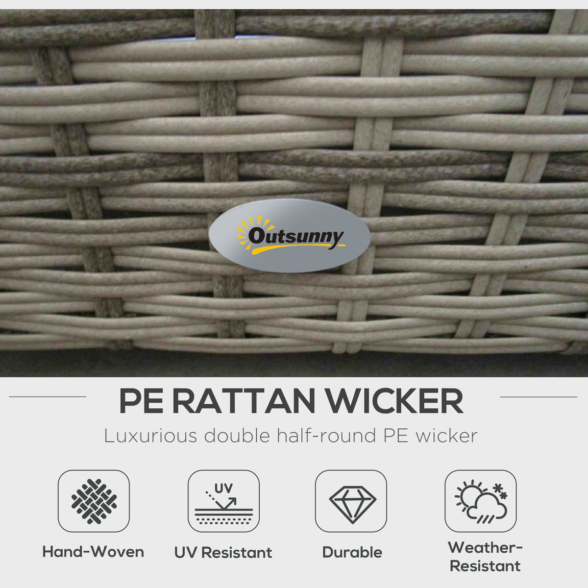 Take comfort to your garden with this eight-piece outdoor furniture from Outsunny. Powder coated steel frames make each piece strong and supportive, wrapped in plastic wicker for a stylish rattan look; also creates a protective shell. Set comes with two armless chairs, two footstools and two square tables - seats up to six people. Compact design: footstools fit under the tables and armless chairs fit into the corner chairs.